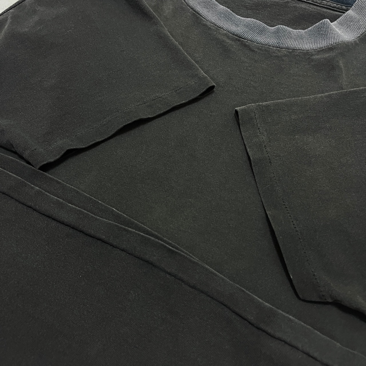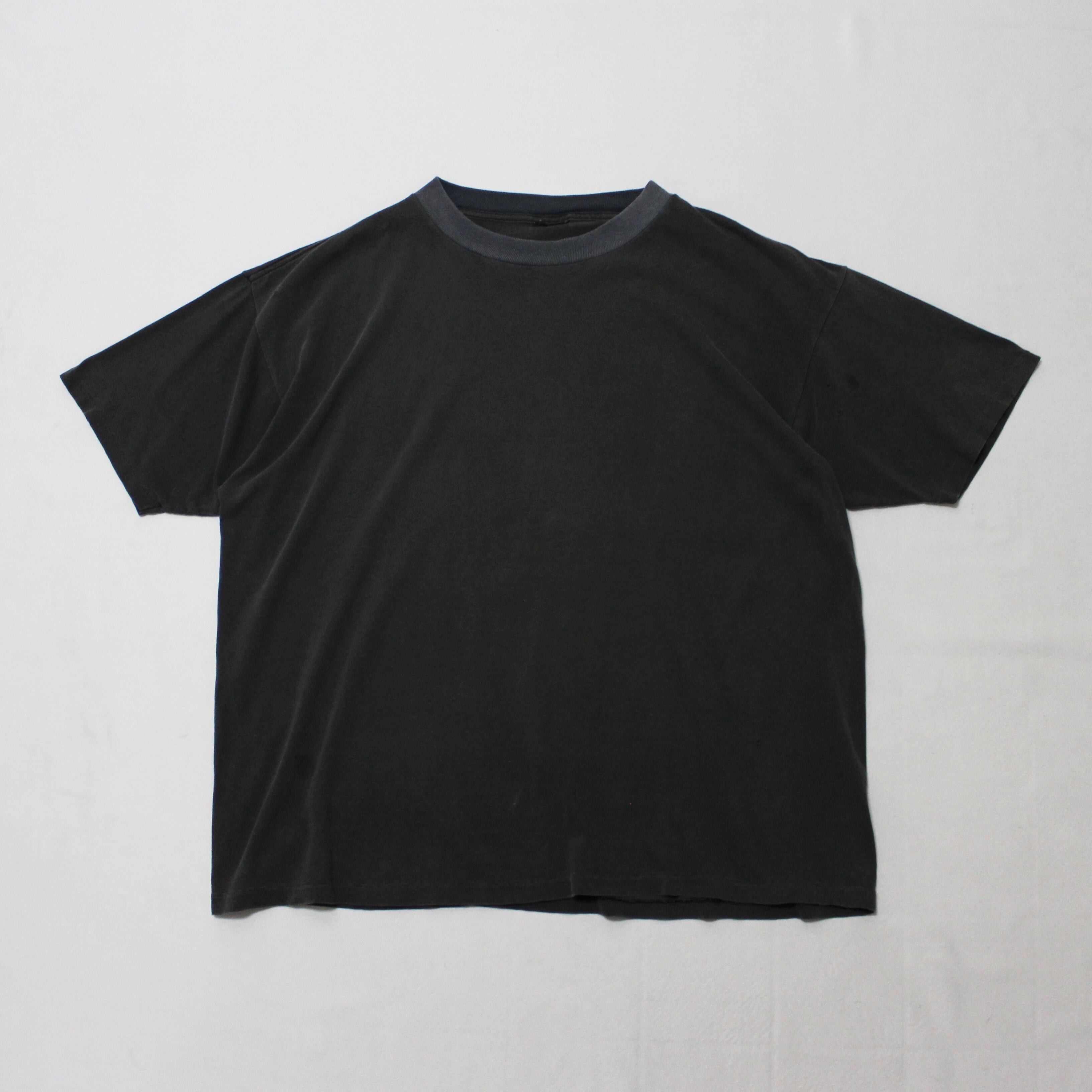 90s リブツートーンデザイン グッドフェード ブラック Tシャツ