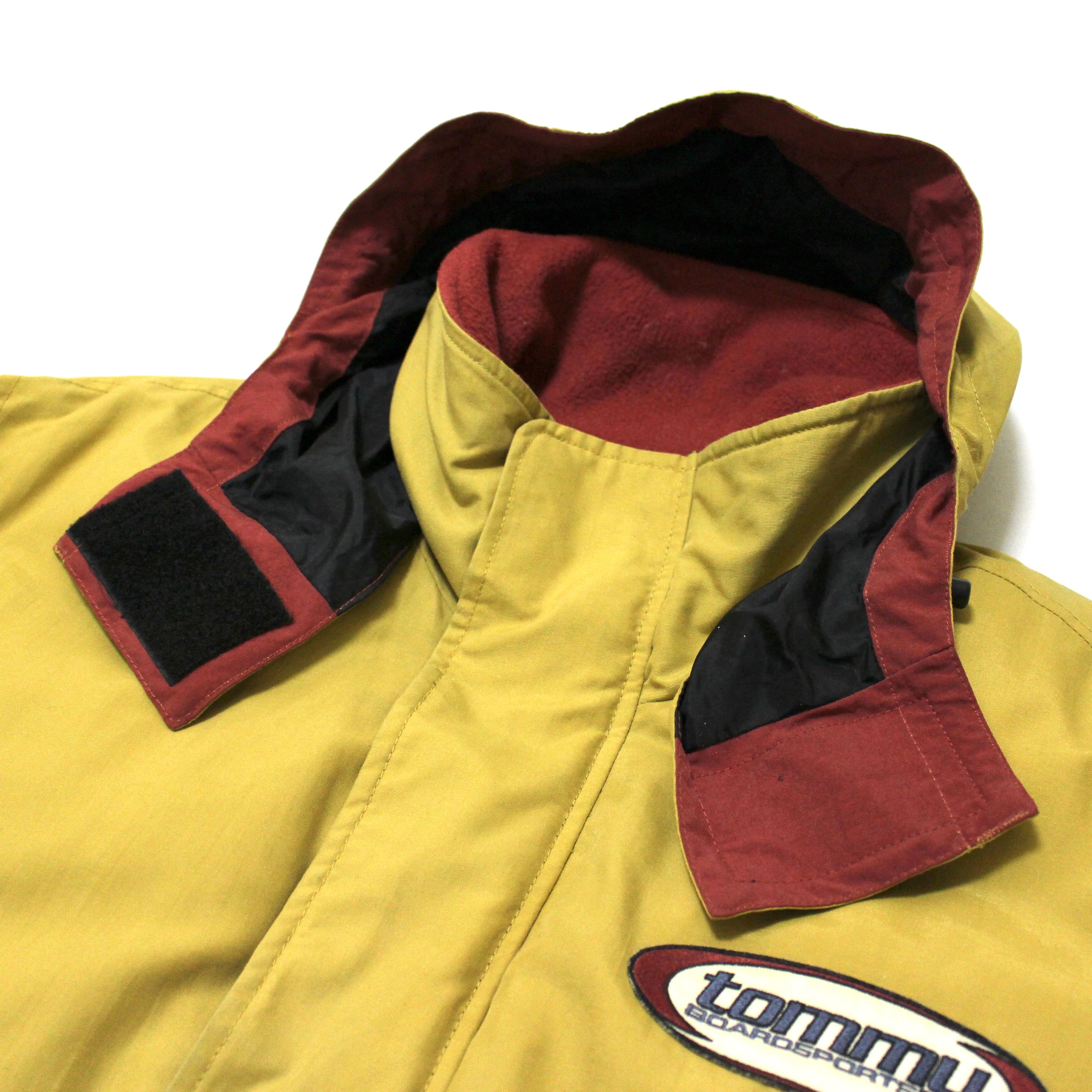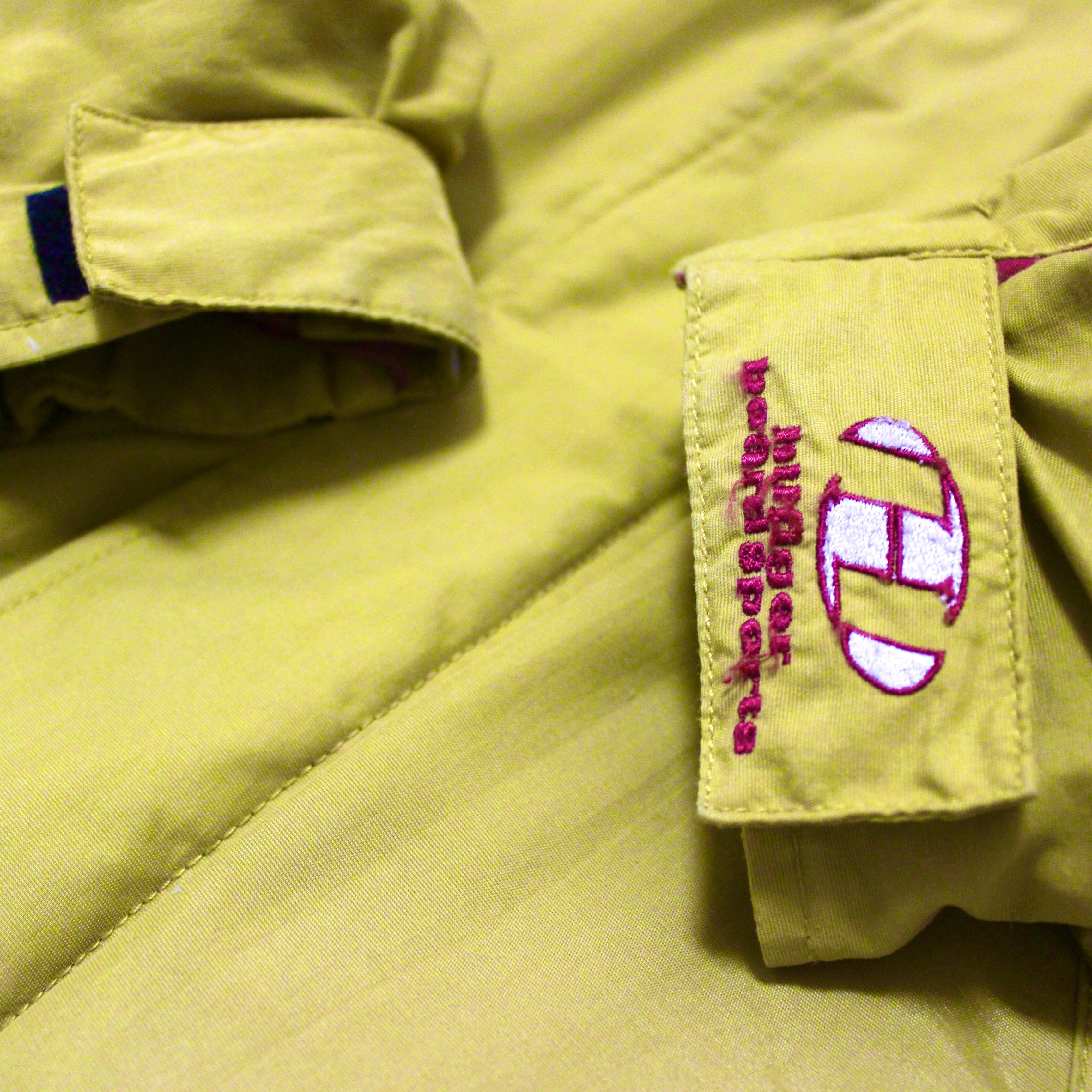 ■状態 写真のように、前立て部分のマジックテープの真ん中2つに補修、右袖に色抜けと汚れがあります。