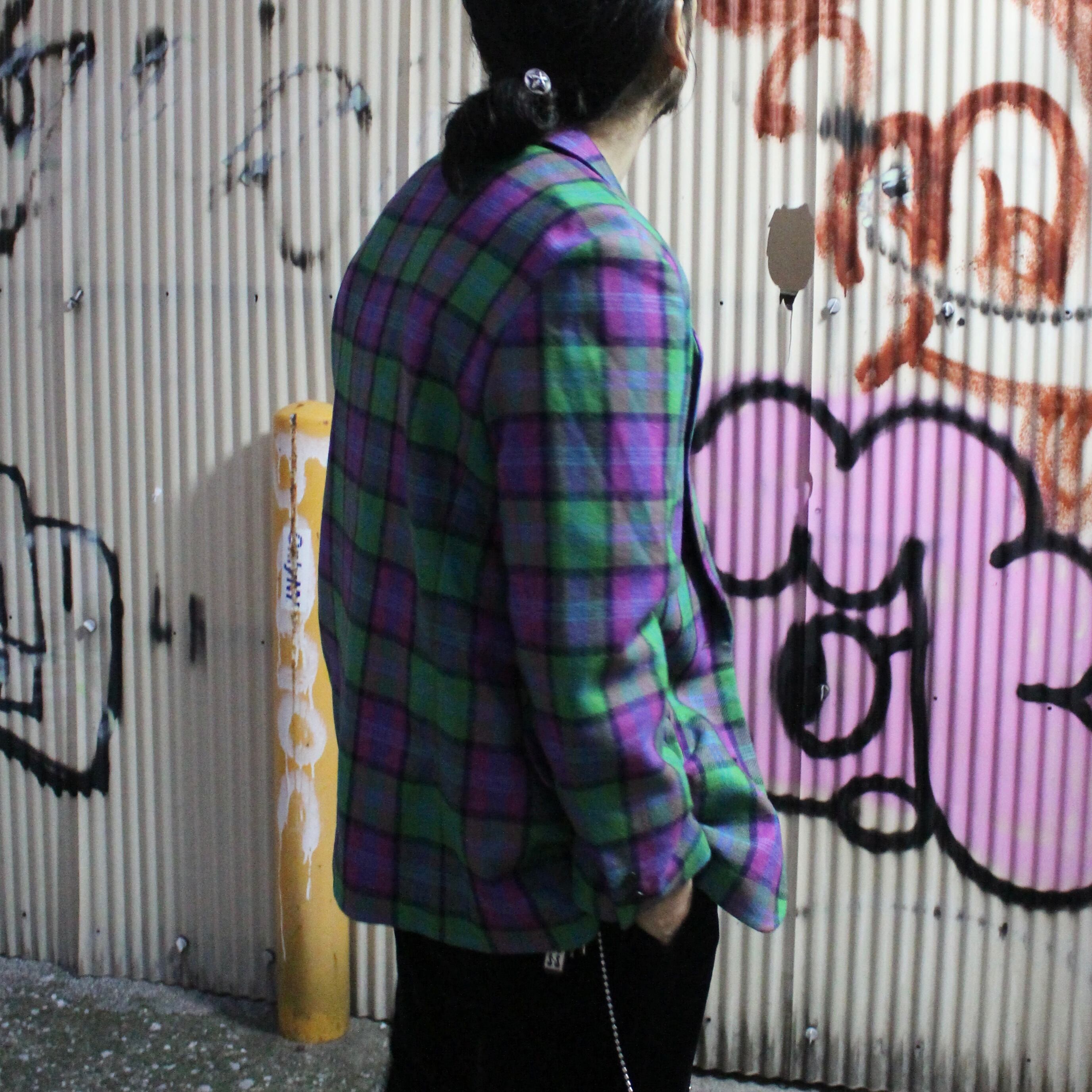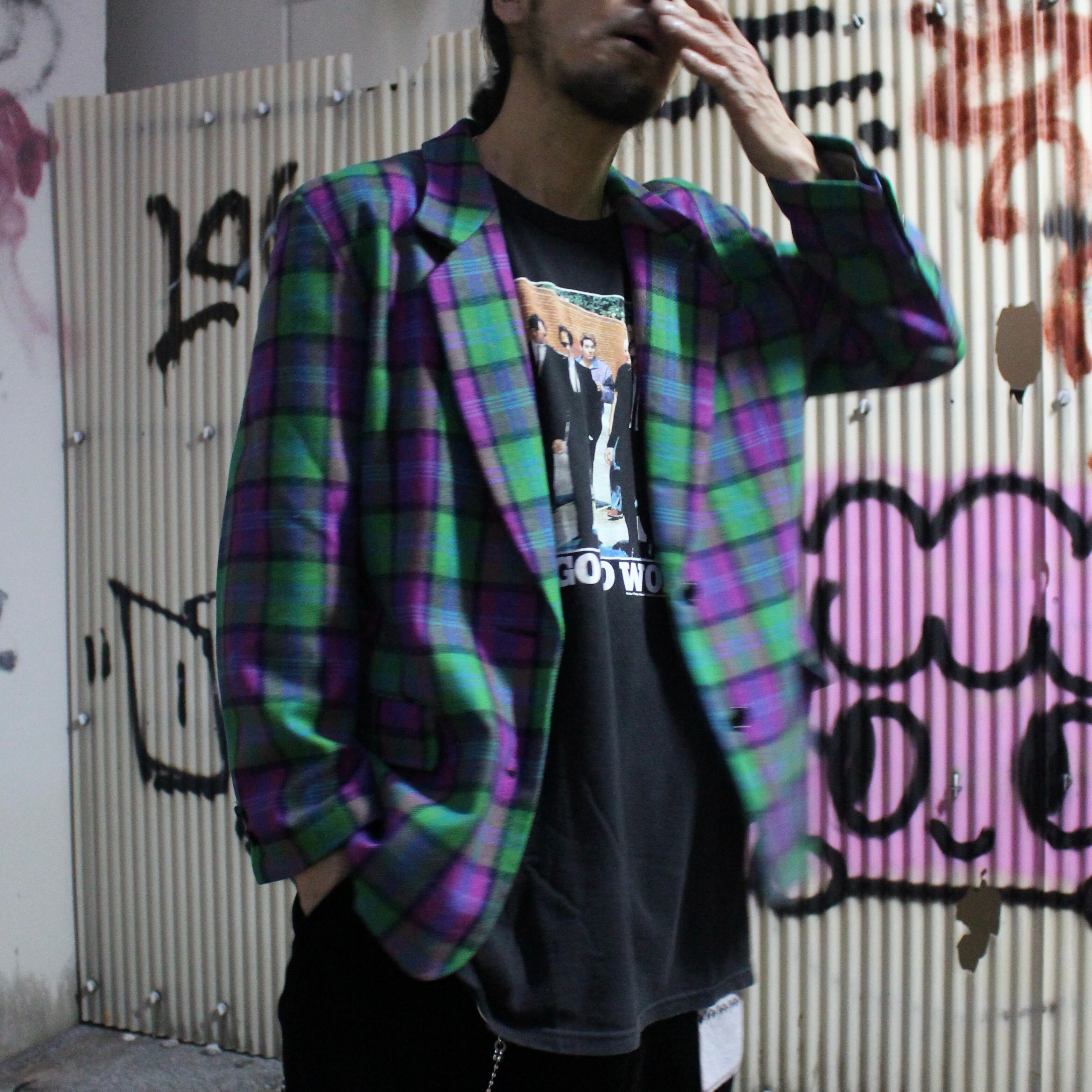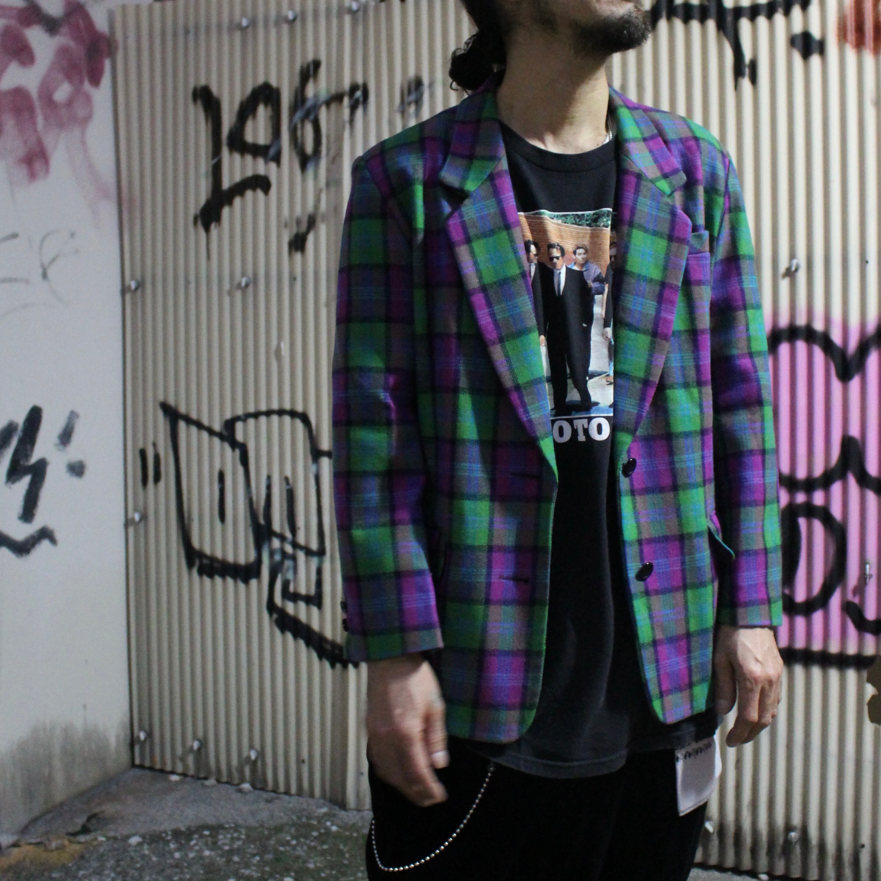 80s' タータンチェック ウール テーラードジャケット