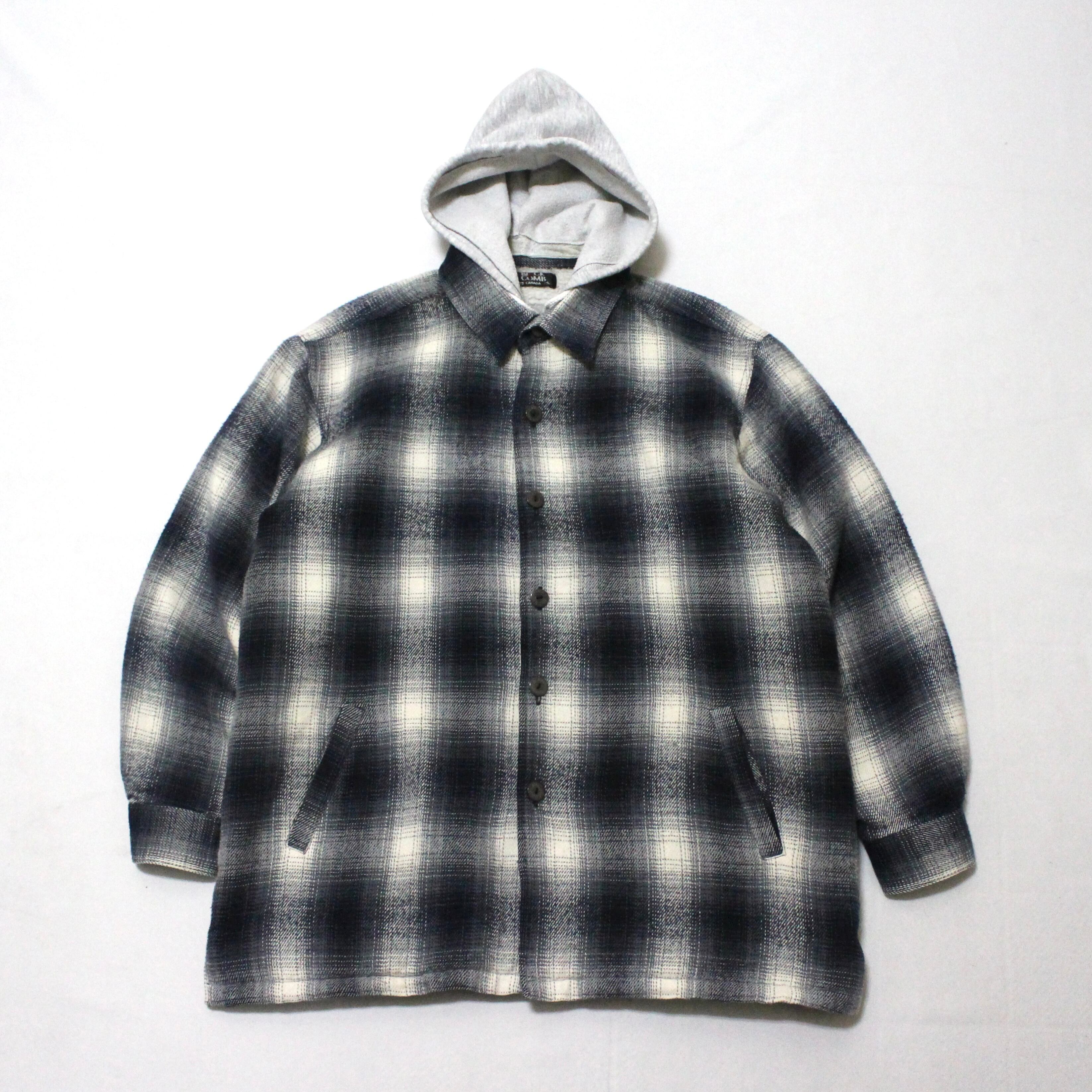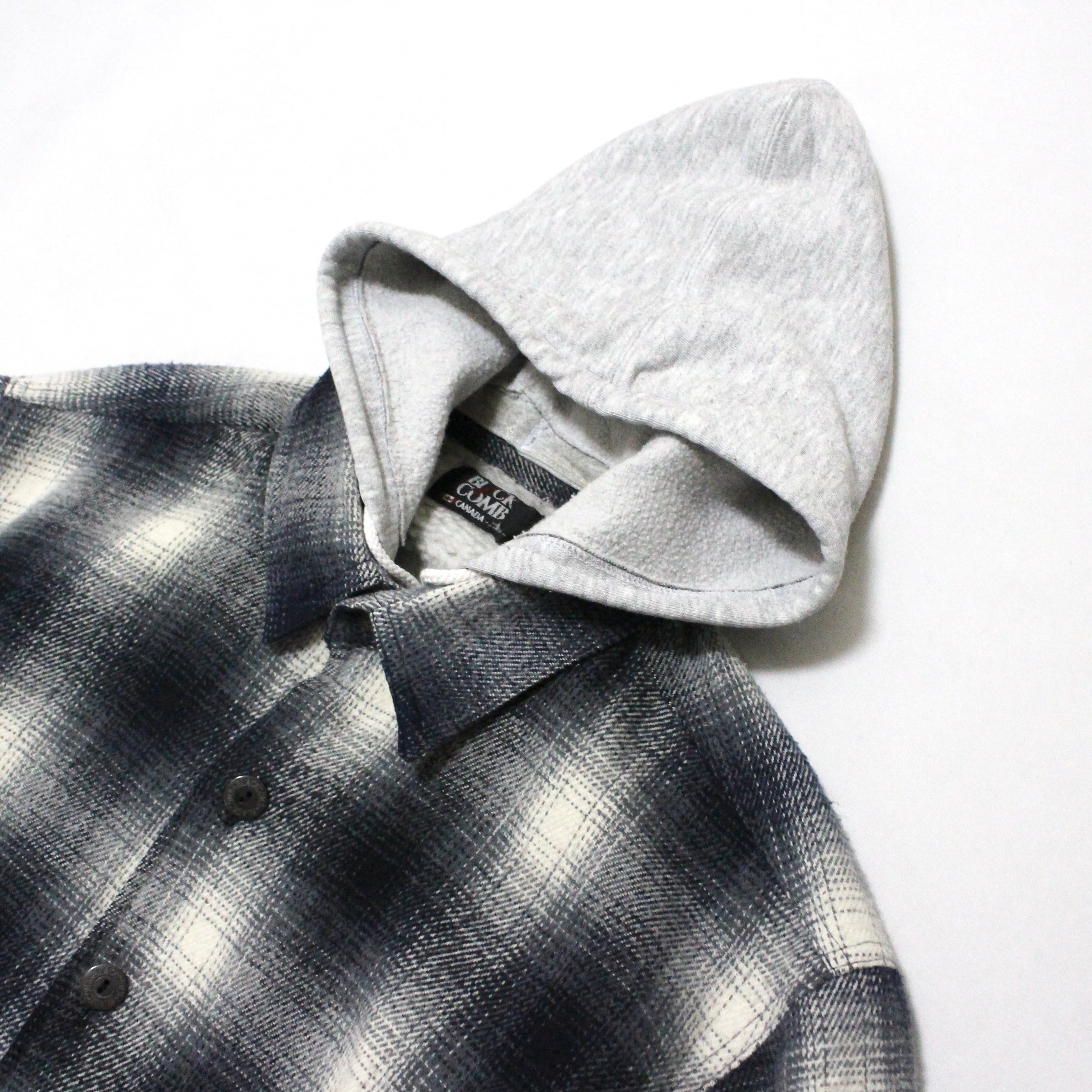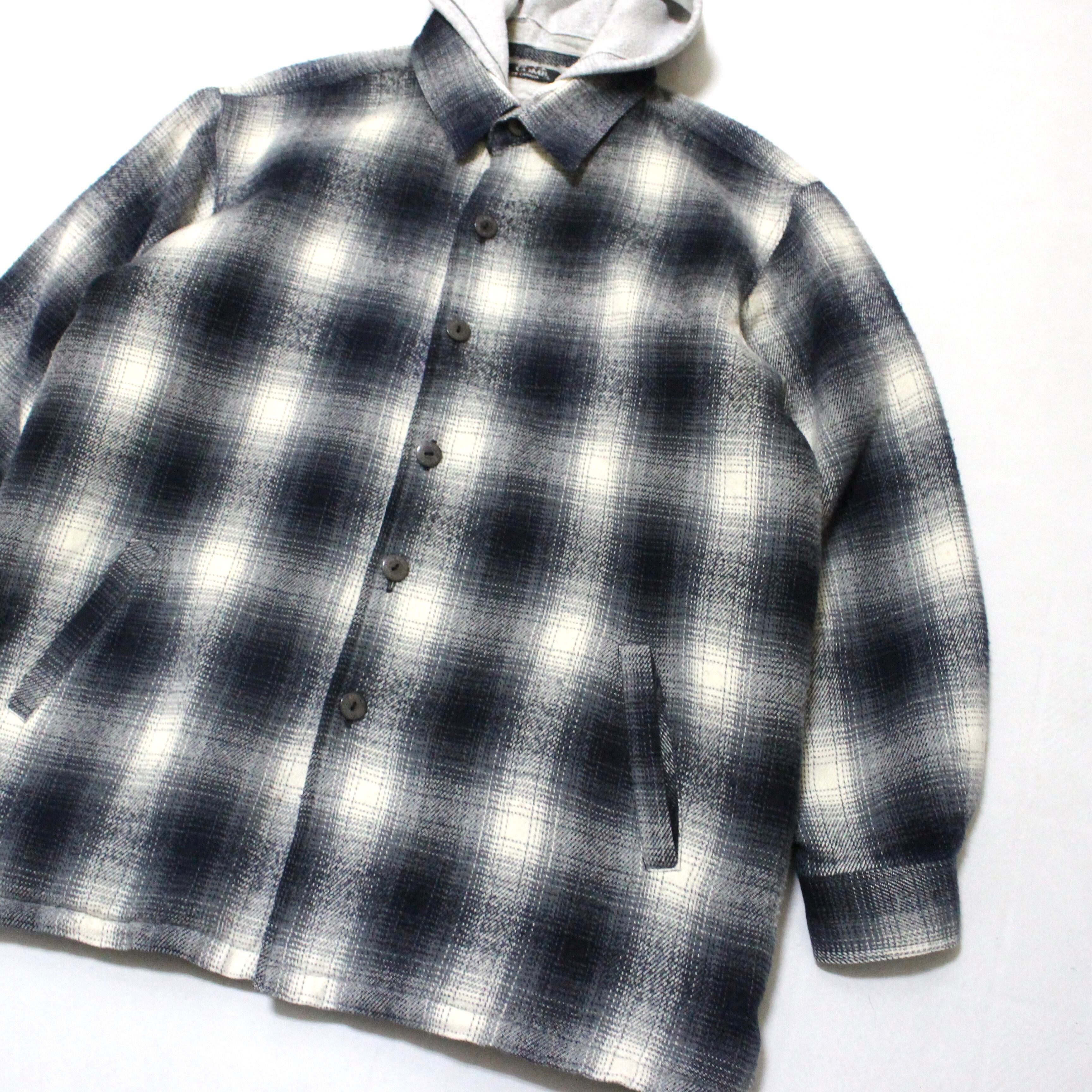 90s BLACK COMB フード付き オンブレチェック シャツジャケット