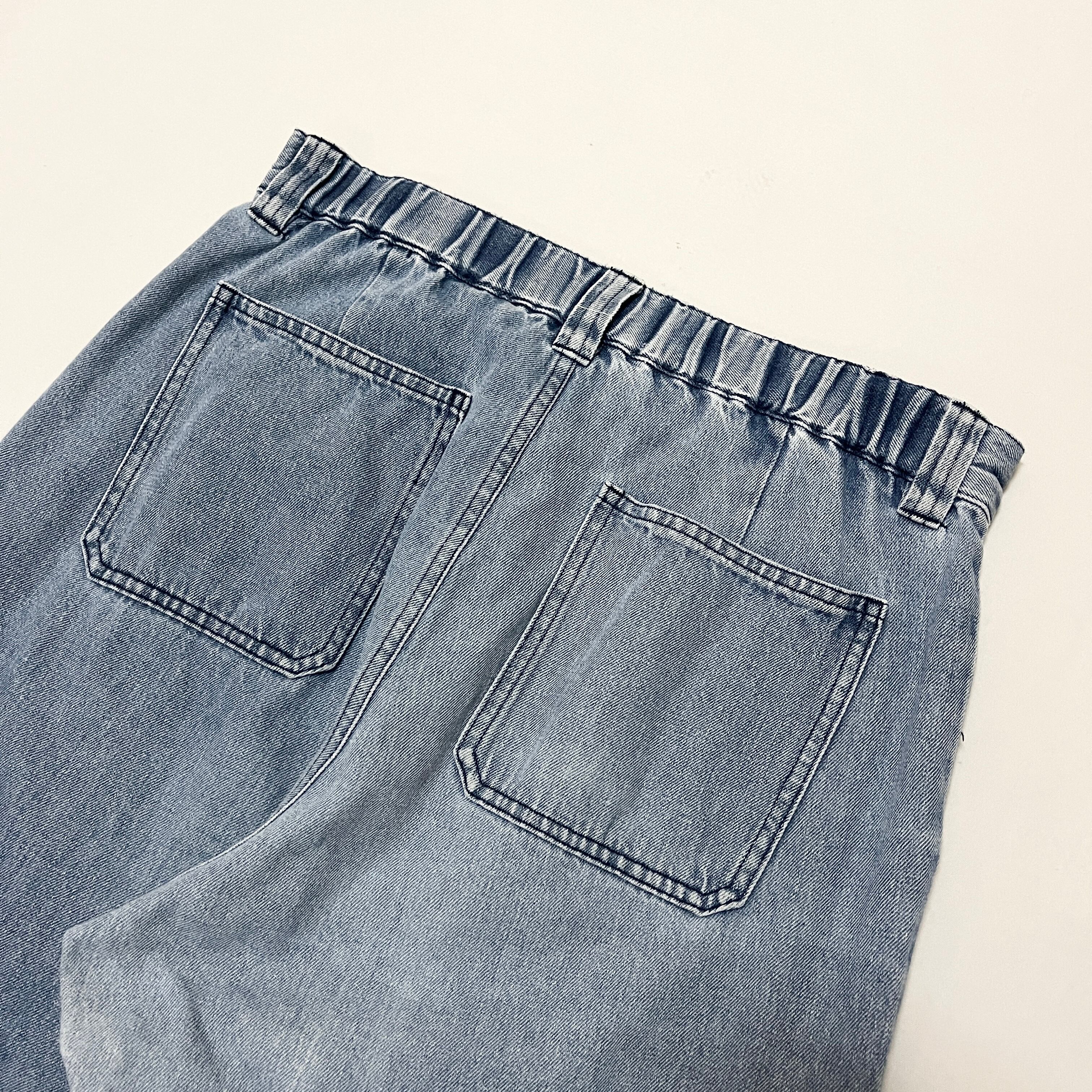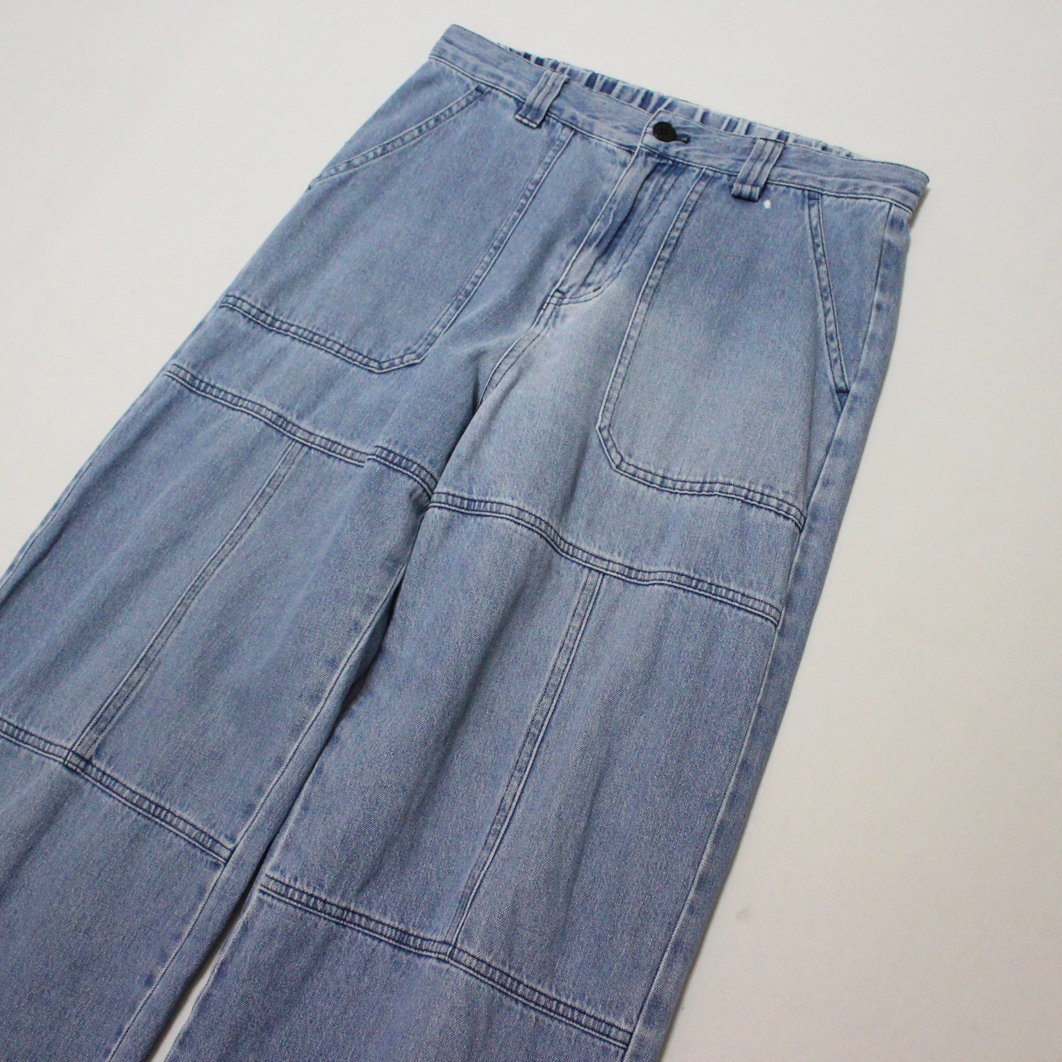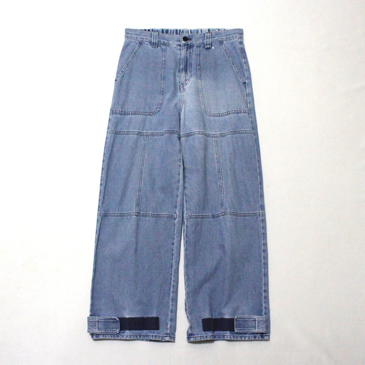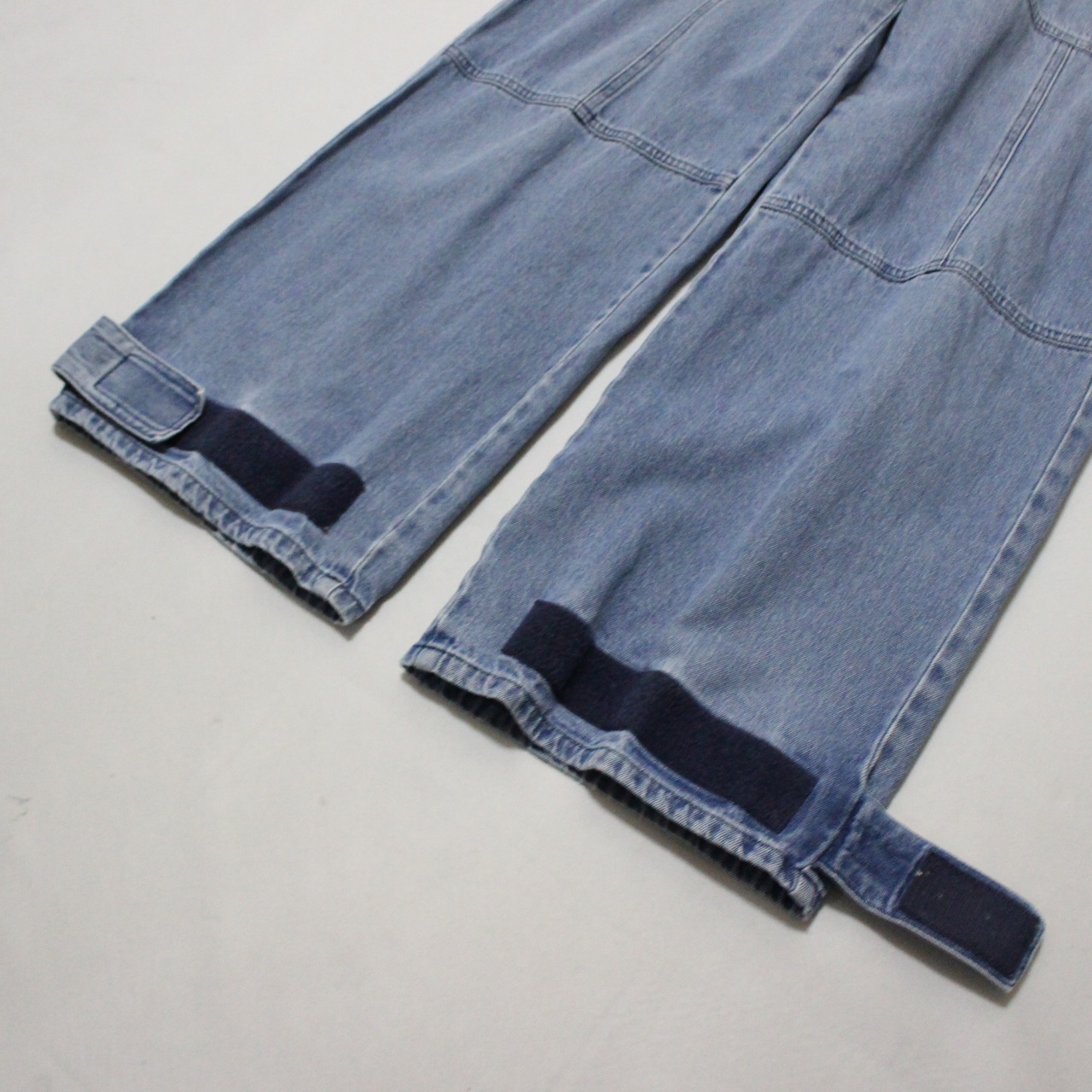 ■ライトオンスの薄手のデニム素材の1本です。ベイカーポケット、ダブルニー、裾にマジックテープデザインのついたギミックの効いた1本です。