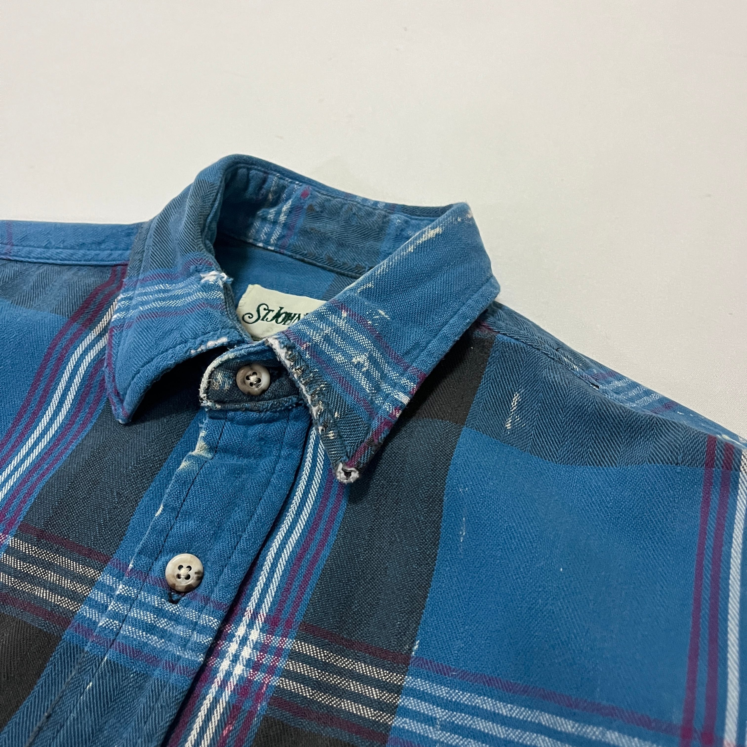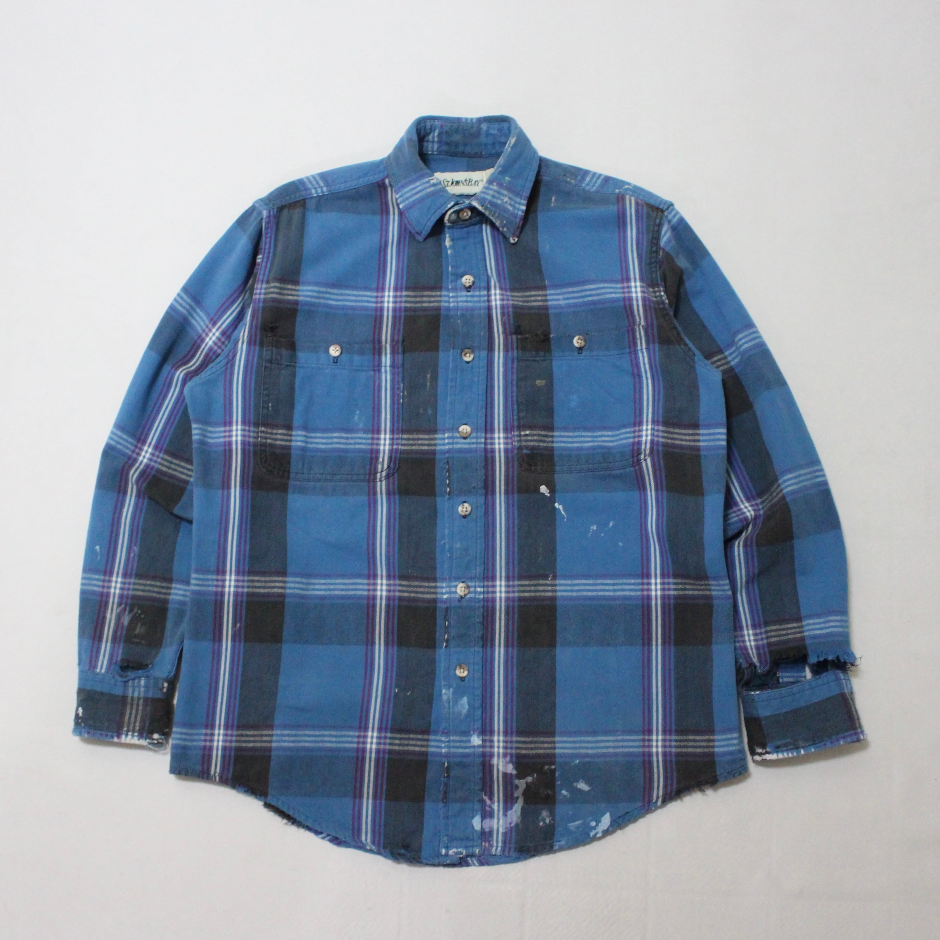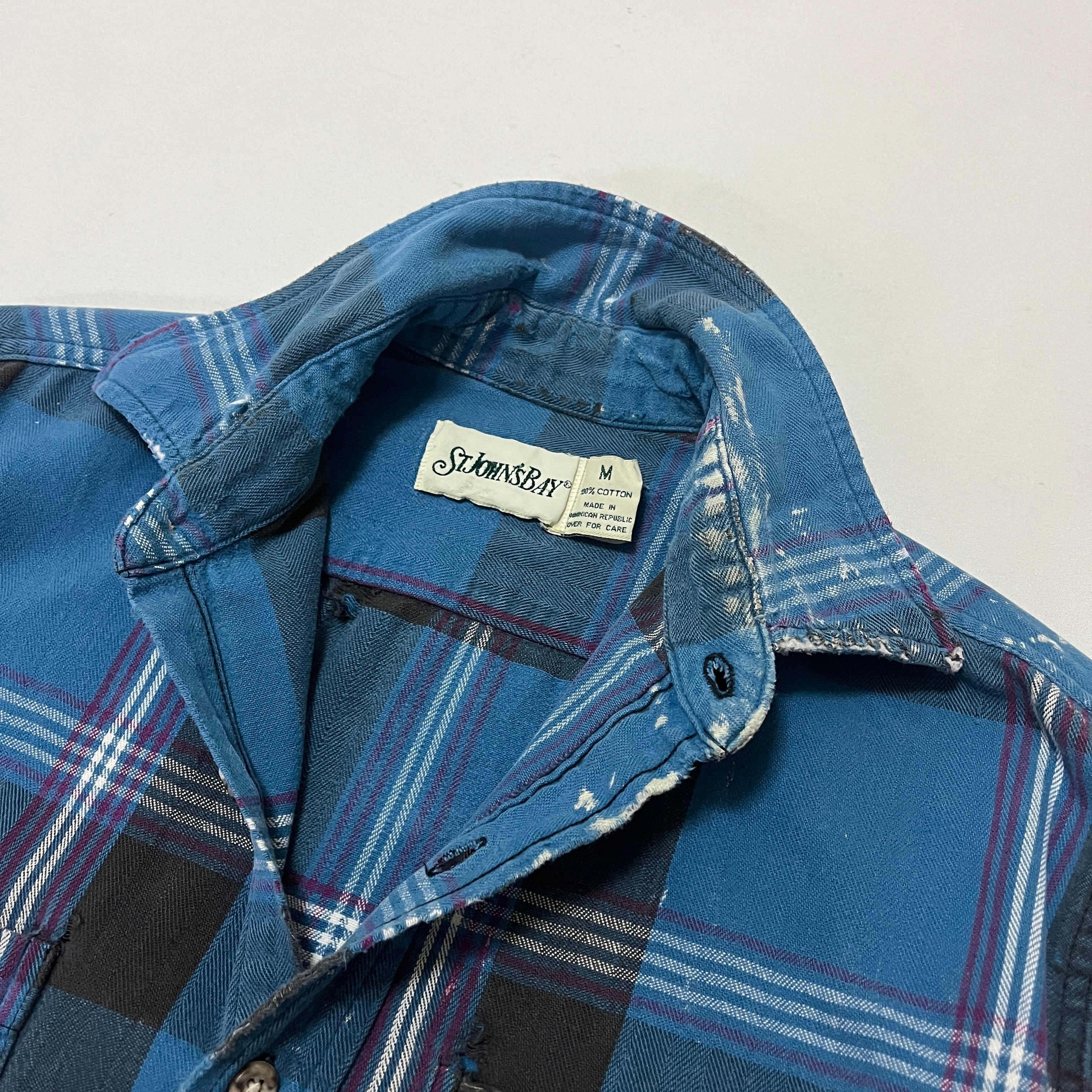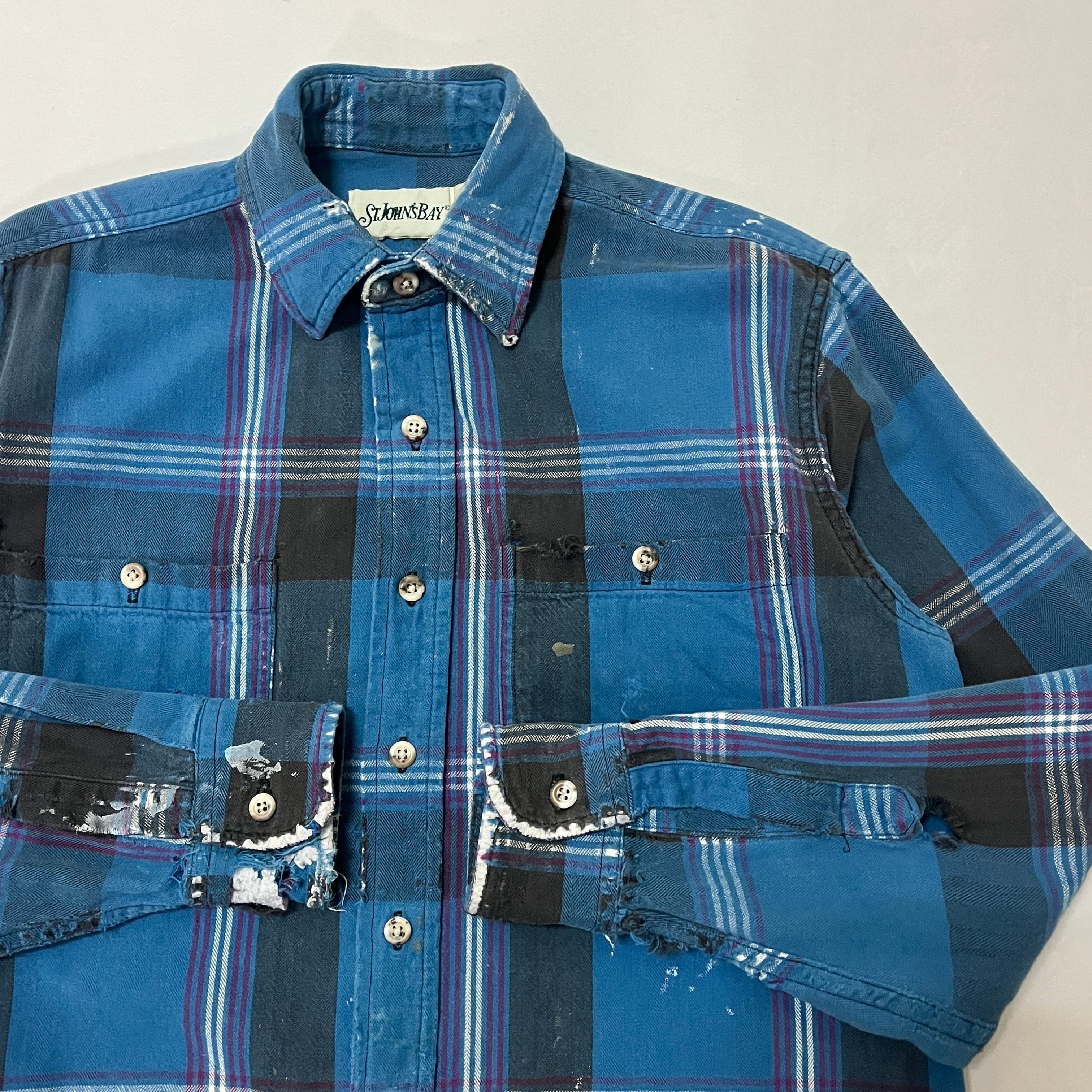 90s ST.JOHN'S BAY 襤褸 ペンキ飛び ヘビーネルチェックシャツ セントジョンズベイ
