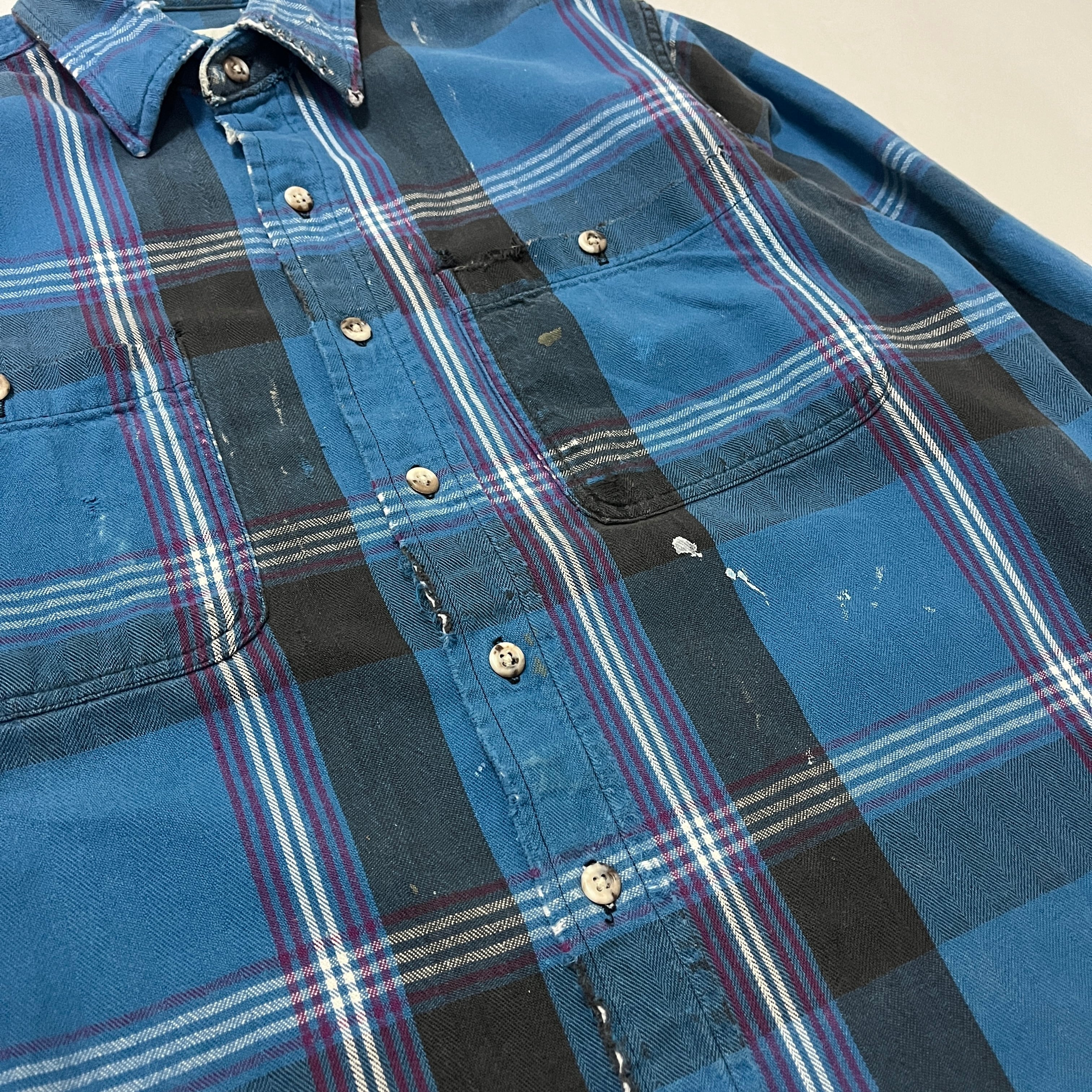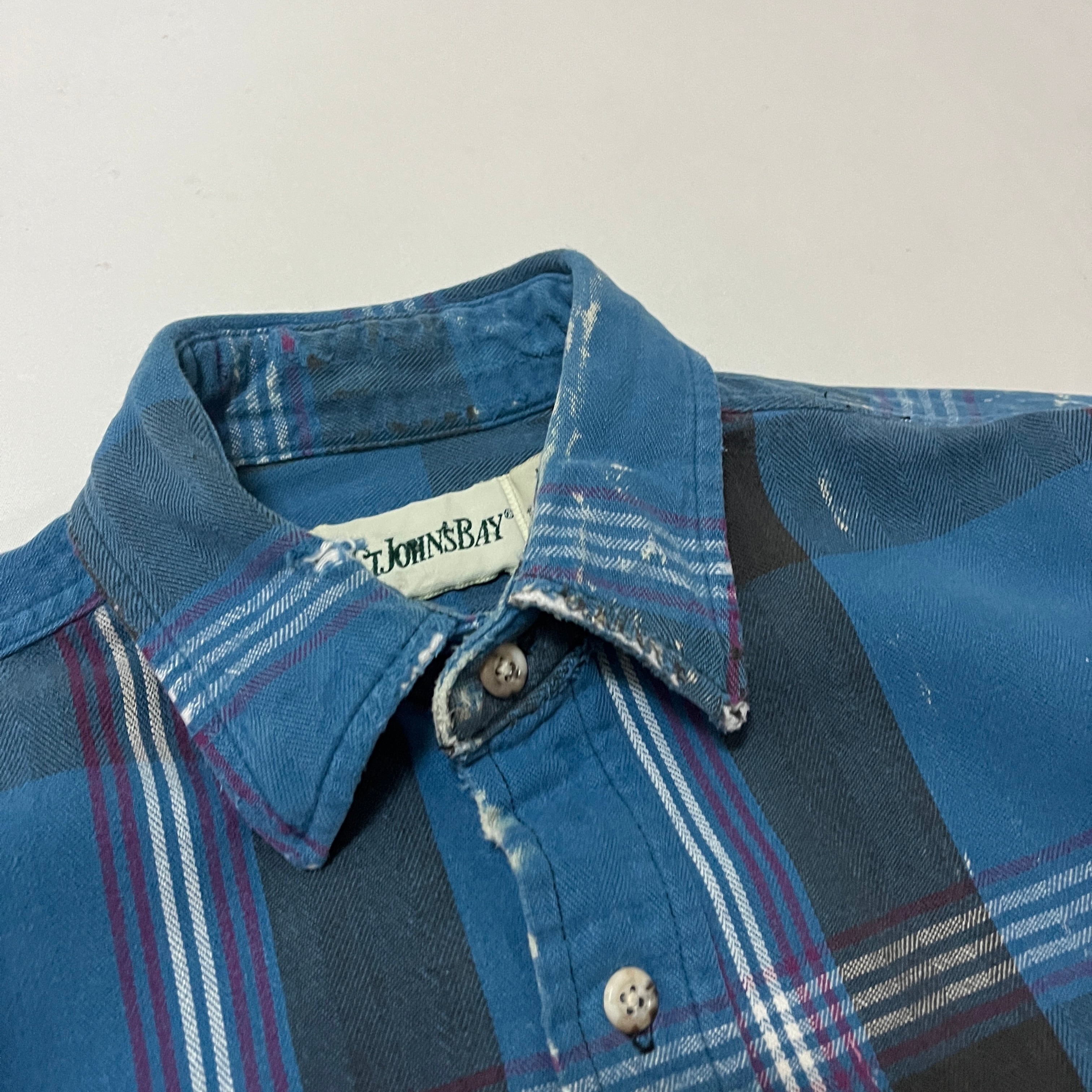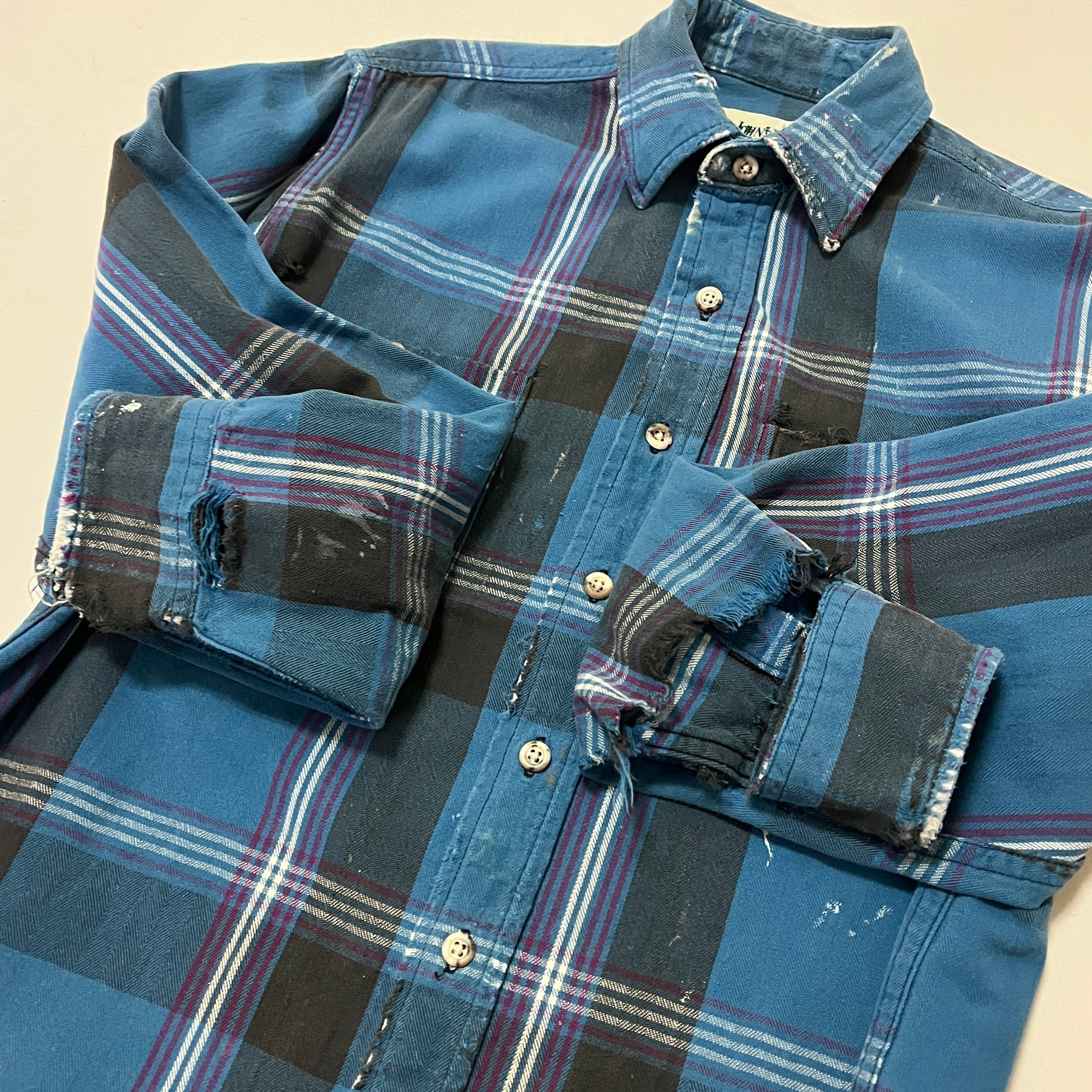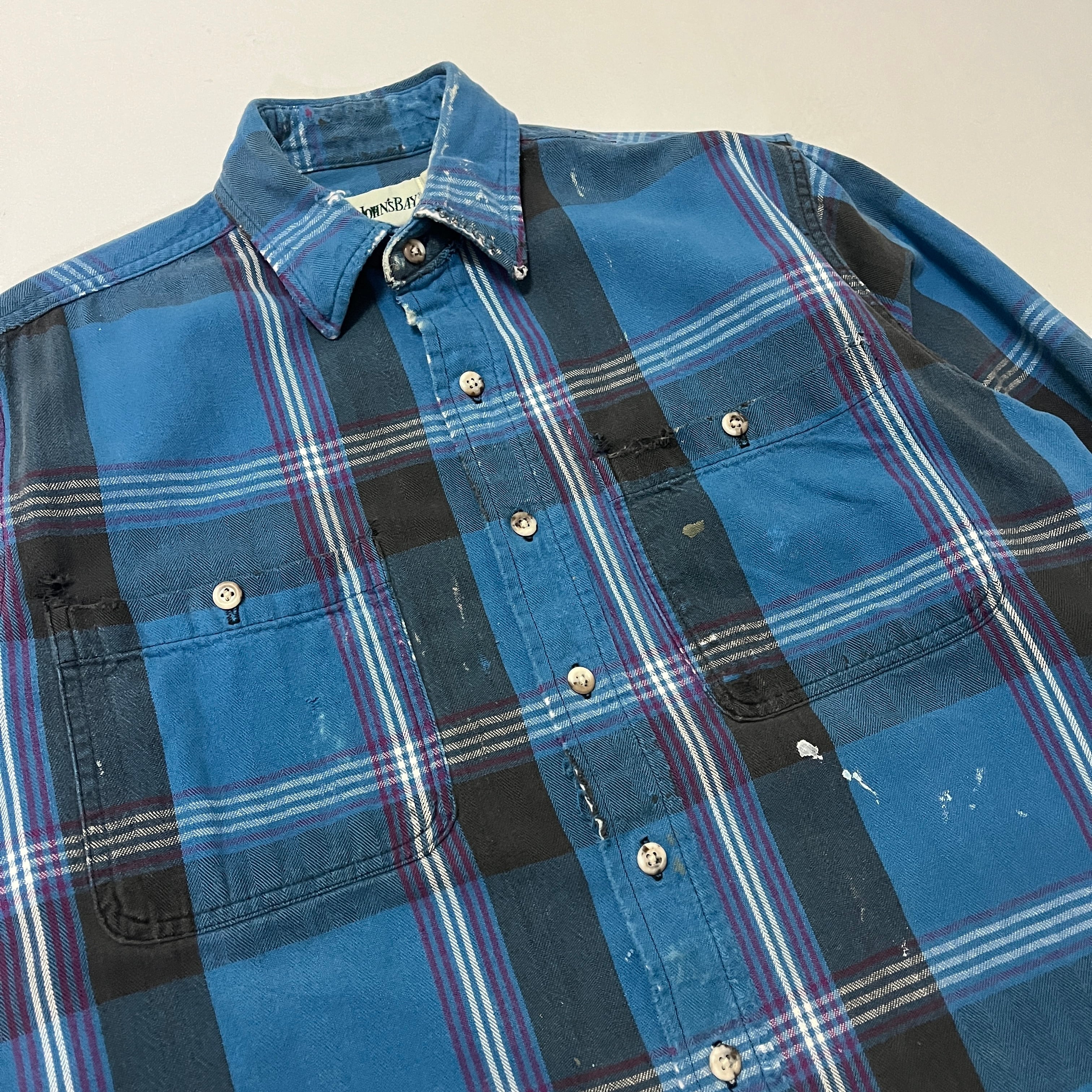 90s ST.JOHN'S BAY 襤褸 ペンキ飛び ヘビーネルチェックシャツ セントジョンズベイ