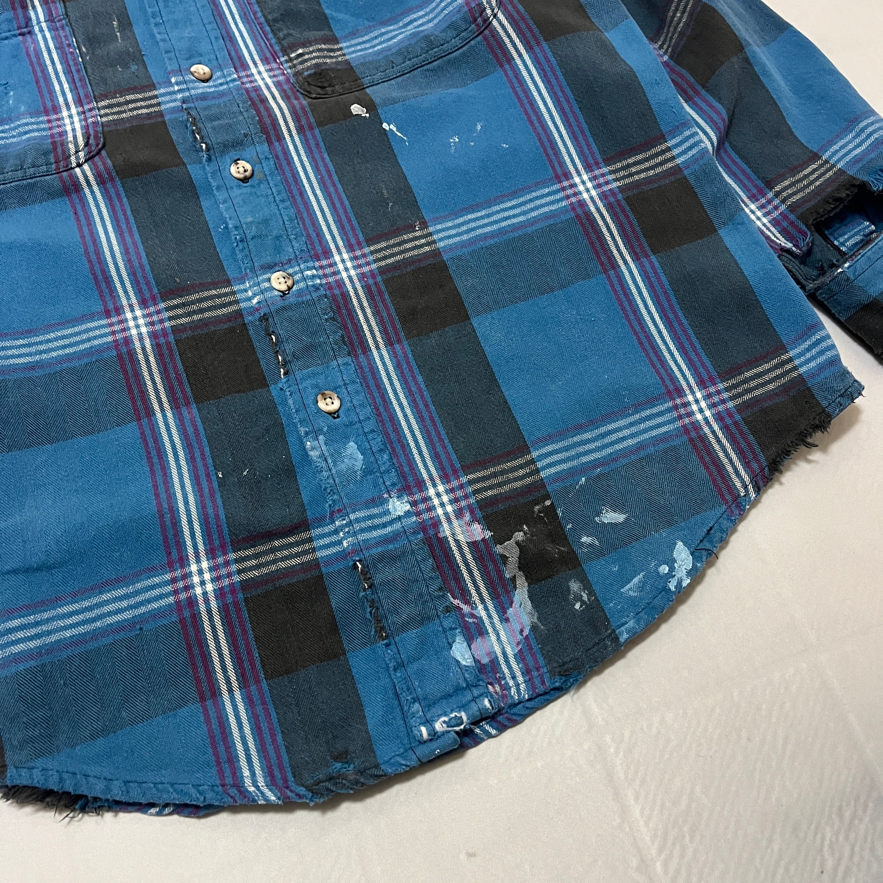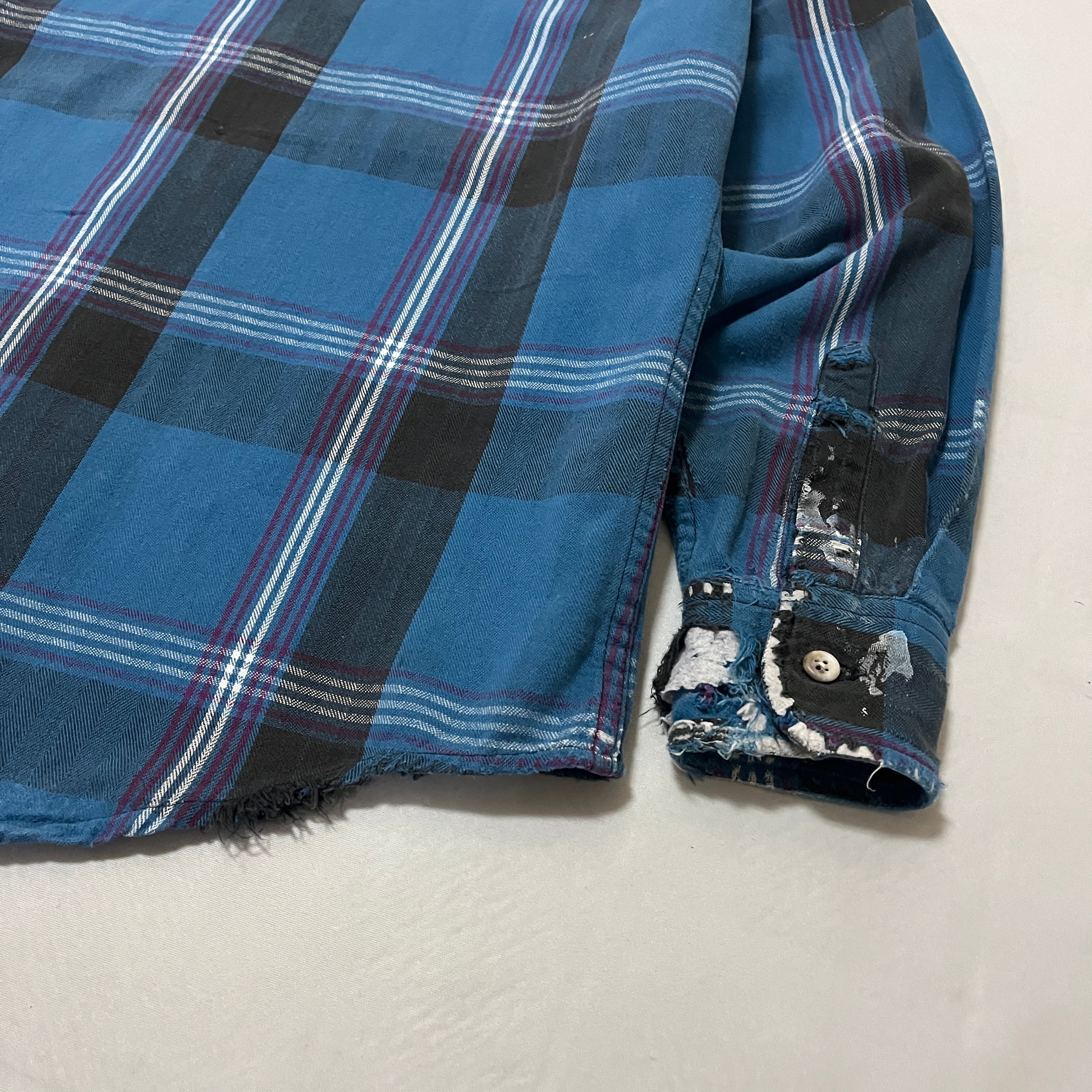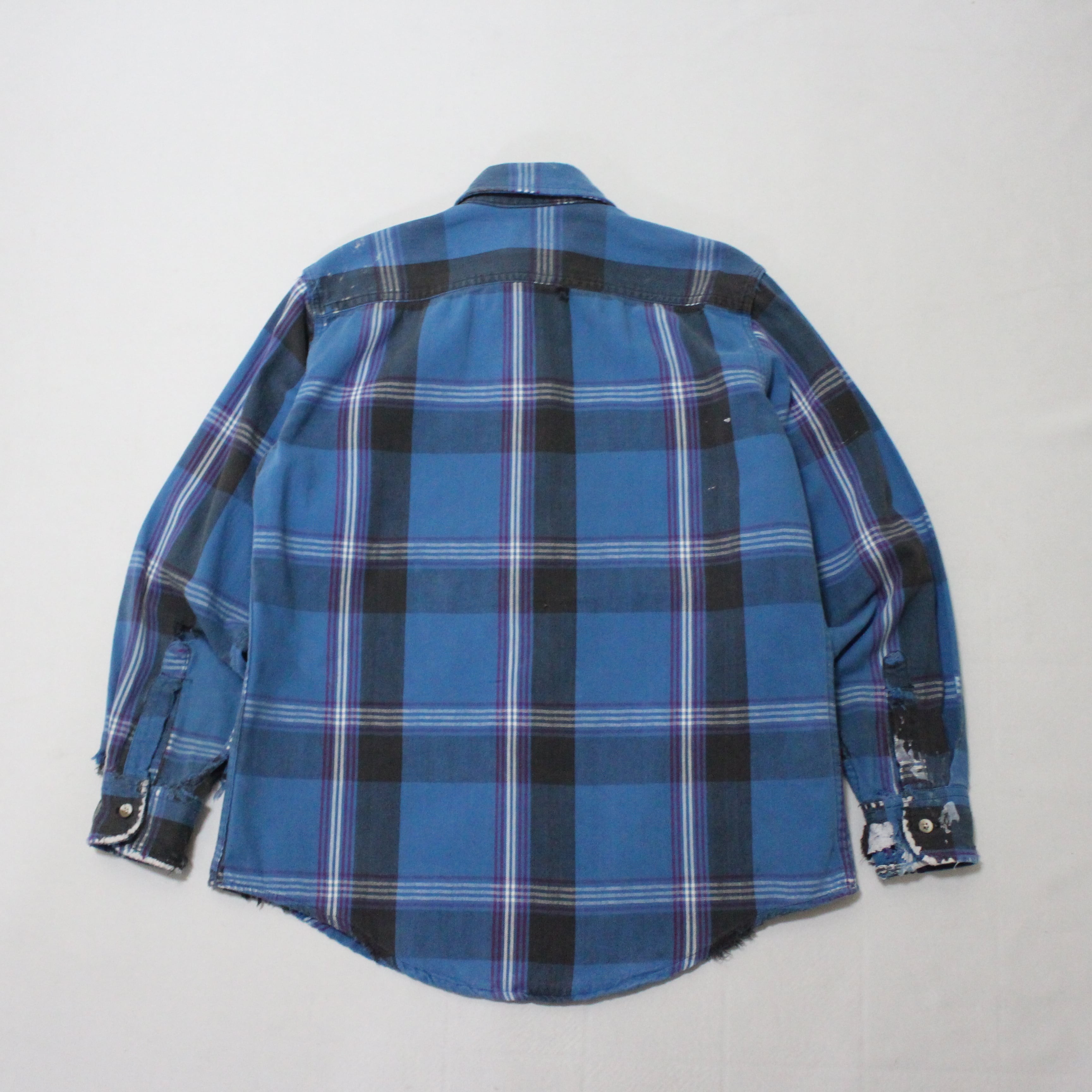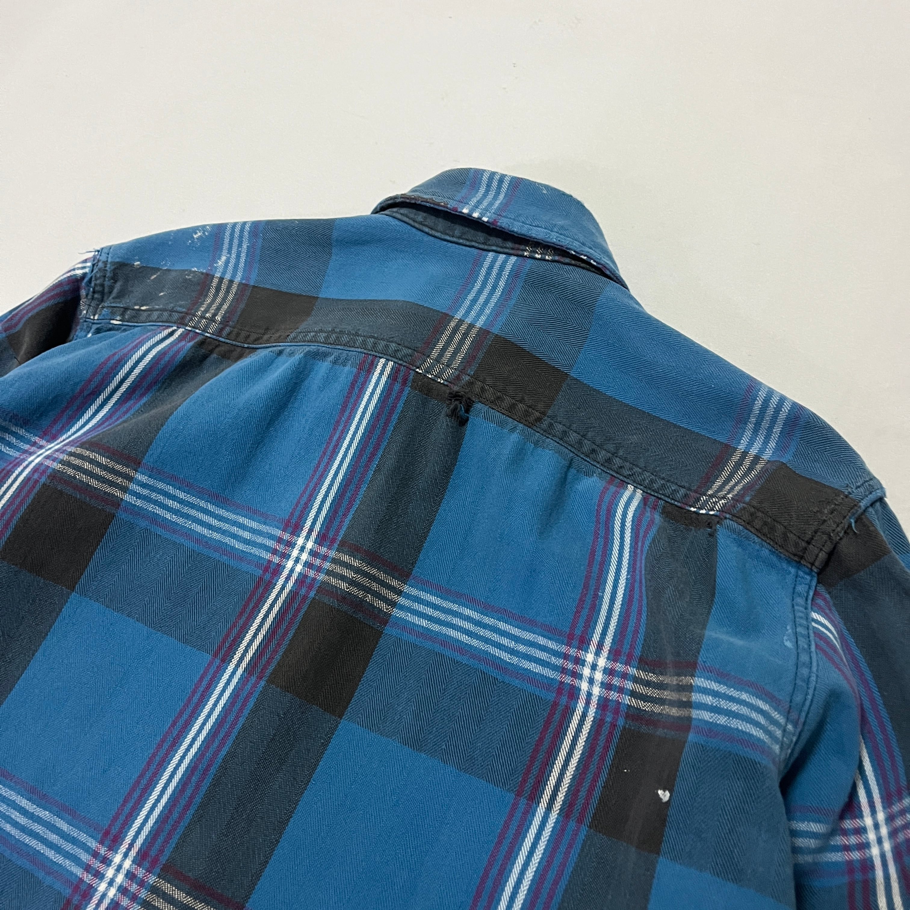 90s ST.JOHN'S BAY 襤褸 ペンキ飛び ヘビーネルチェックシャツ セントジョンズベイ