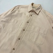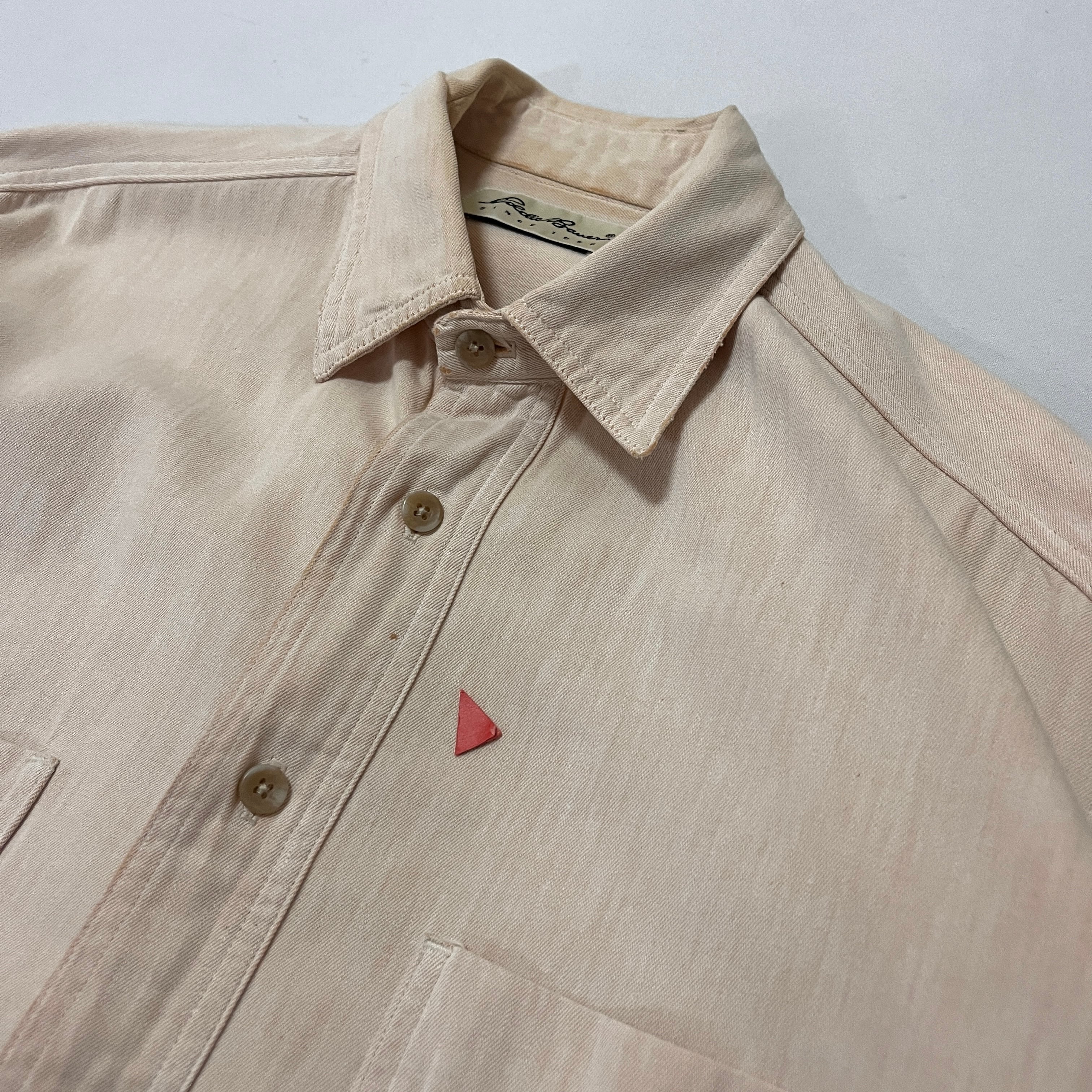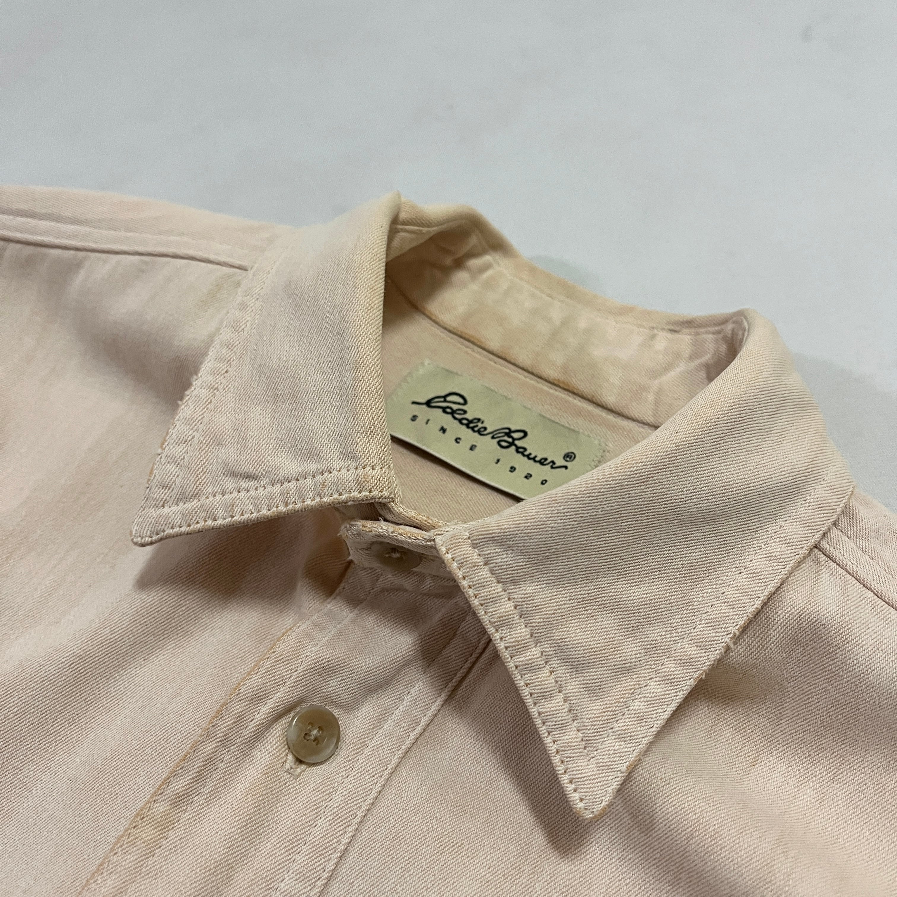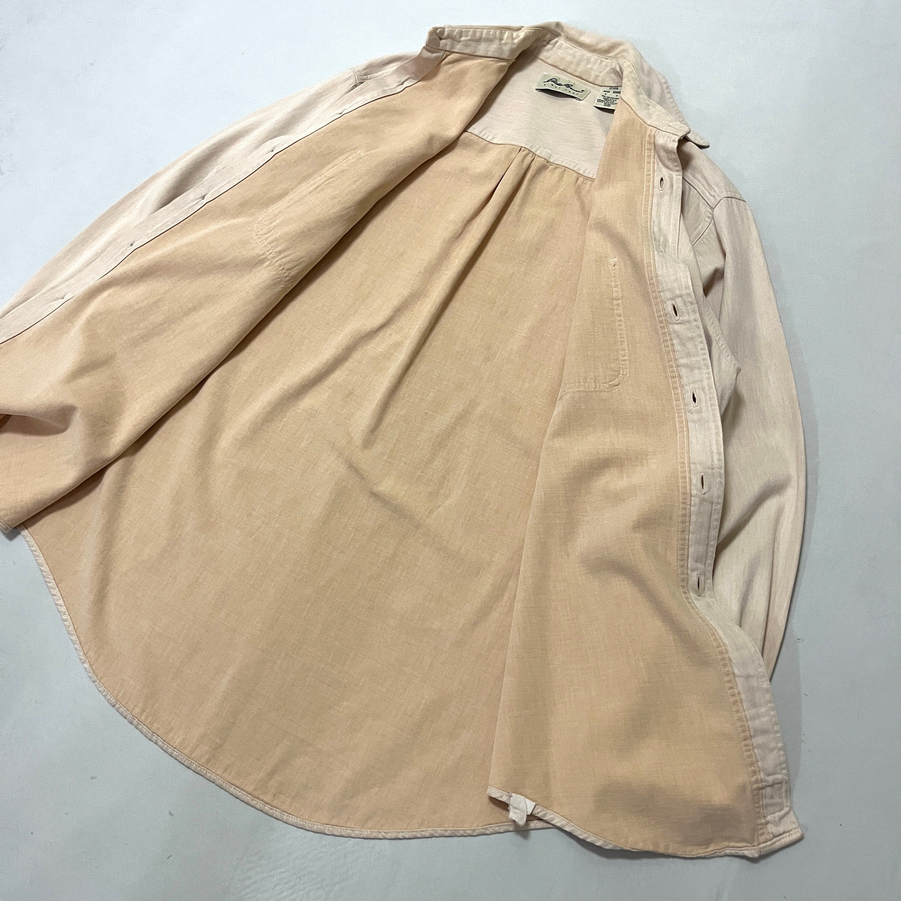 90s USA製 Eddie Bauer コットンシャツ サーモンピンク エディバウアー