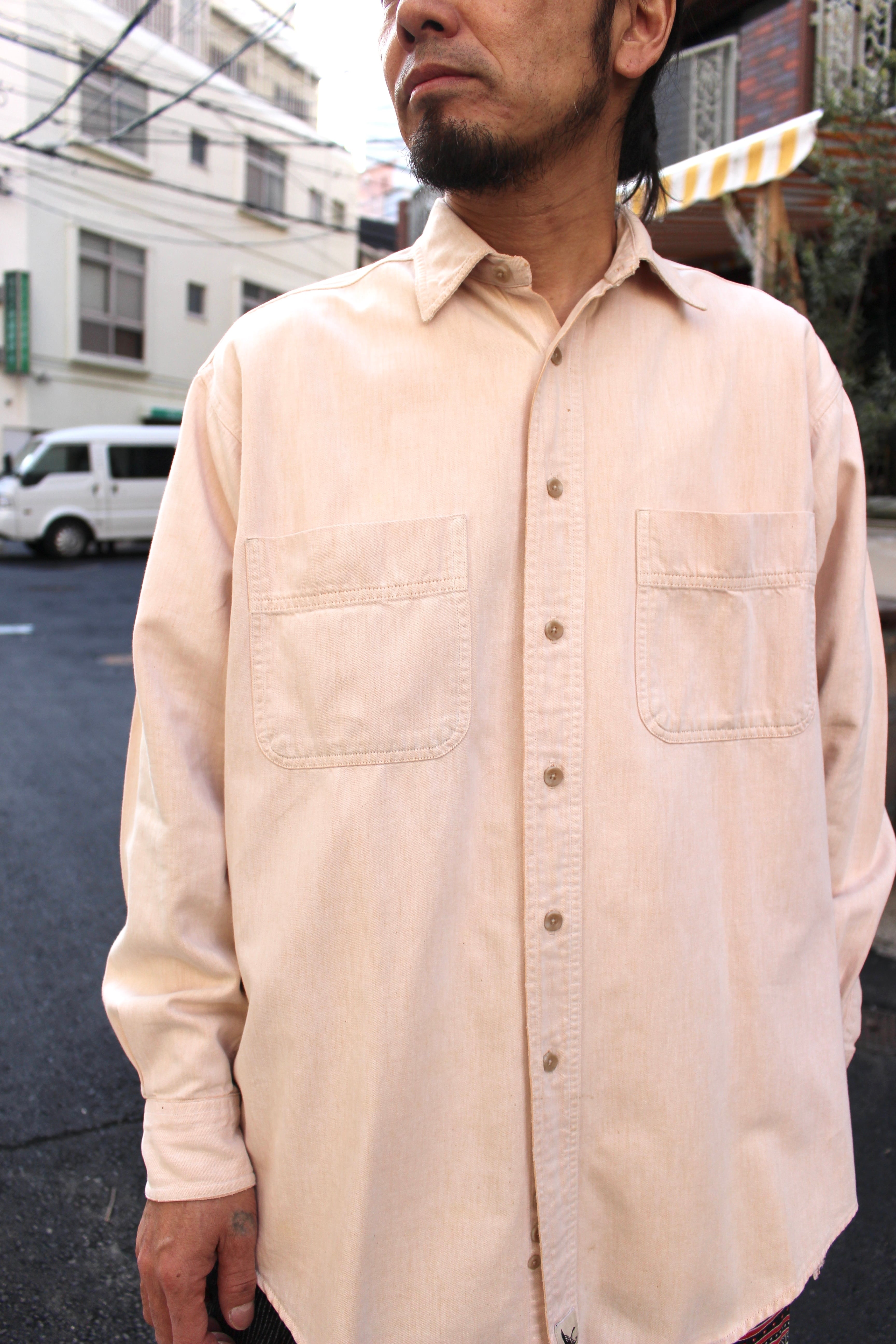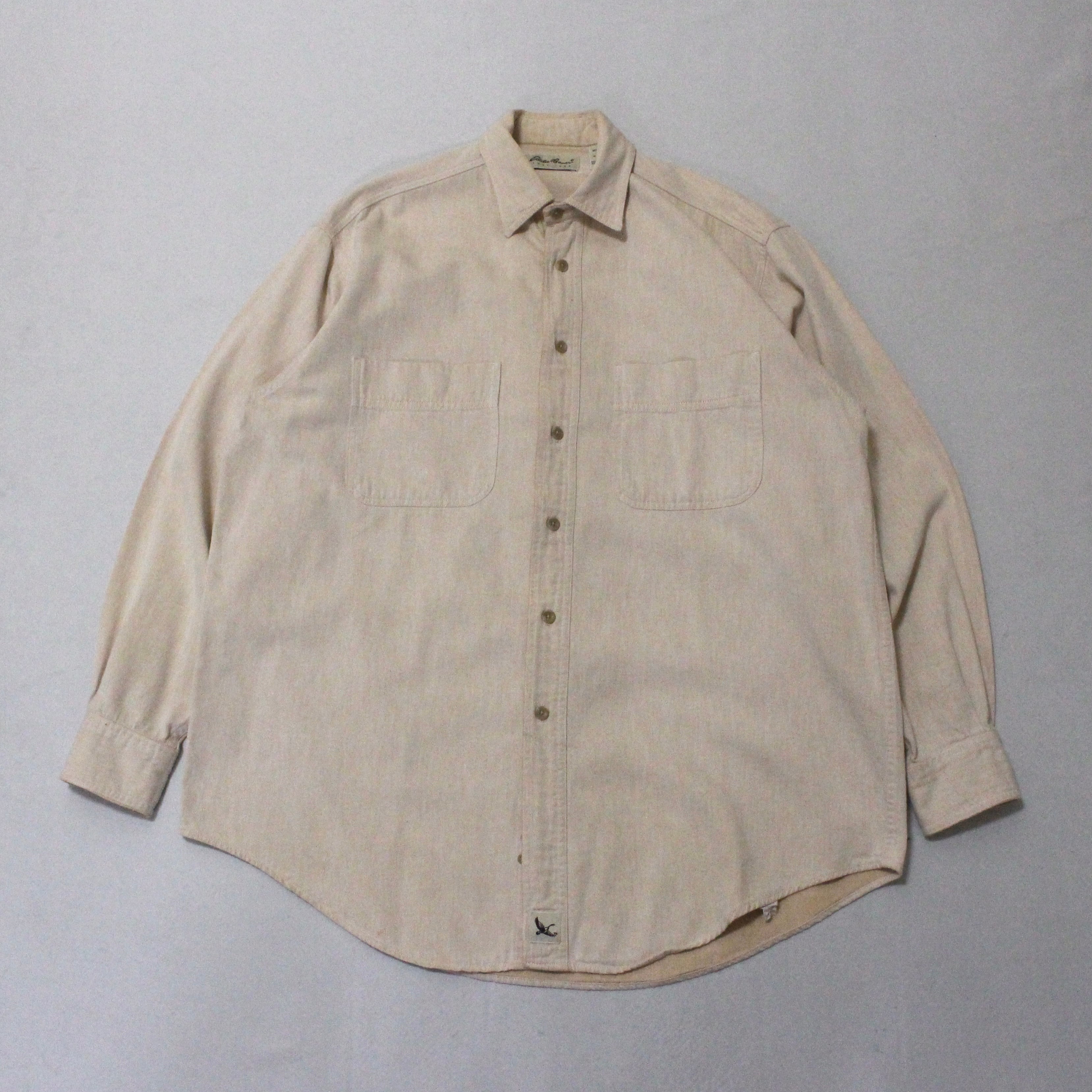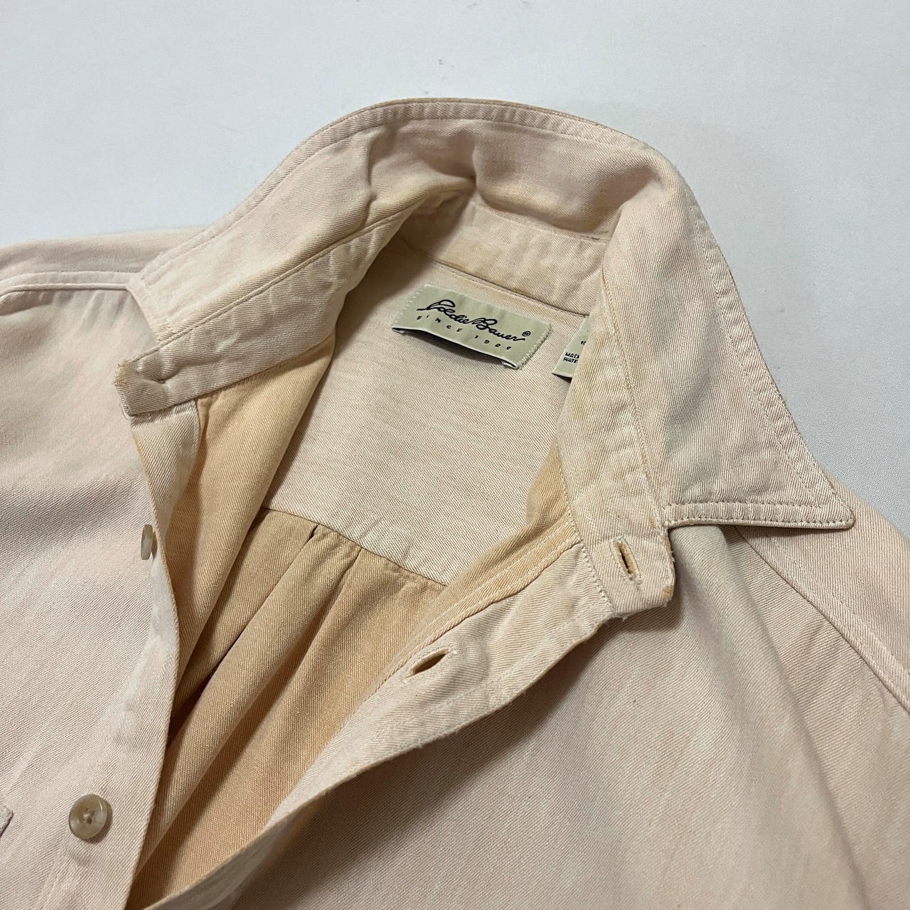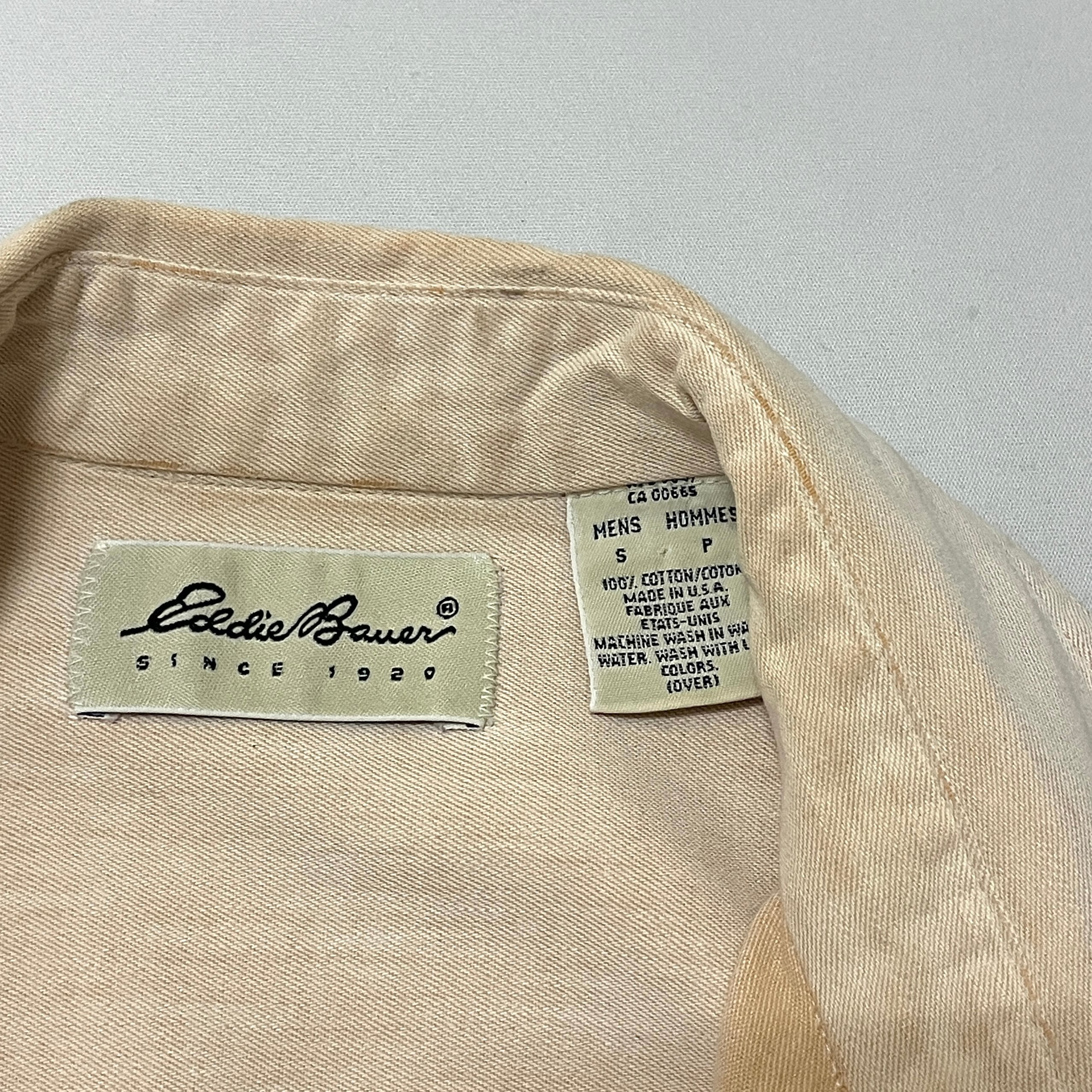 90s USA製 Eddie Bauer コットンシャツ サーモンピンク エディバウアー