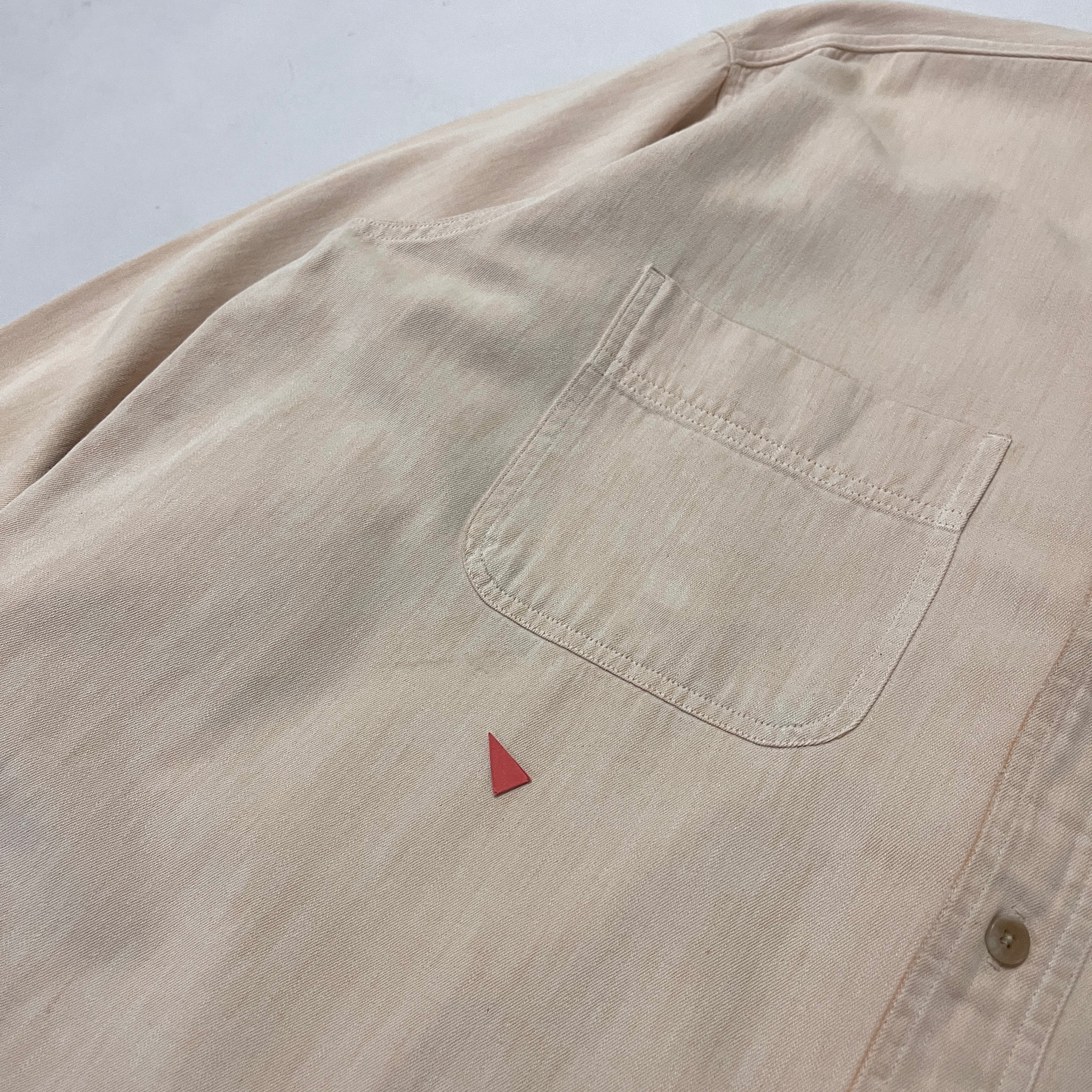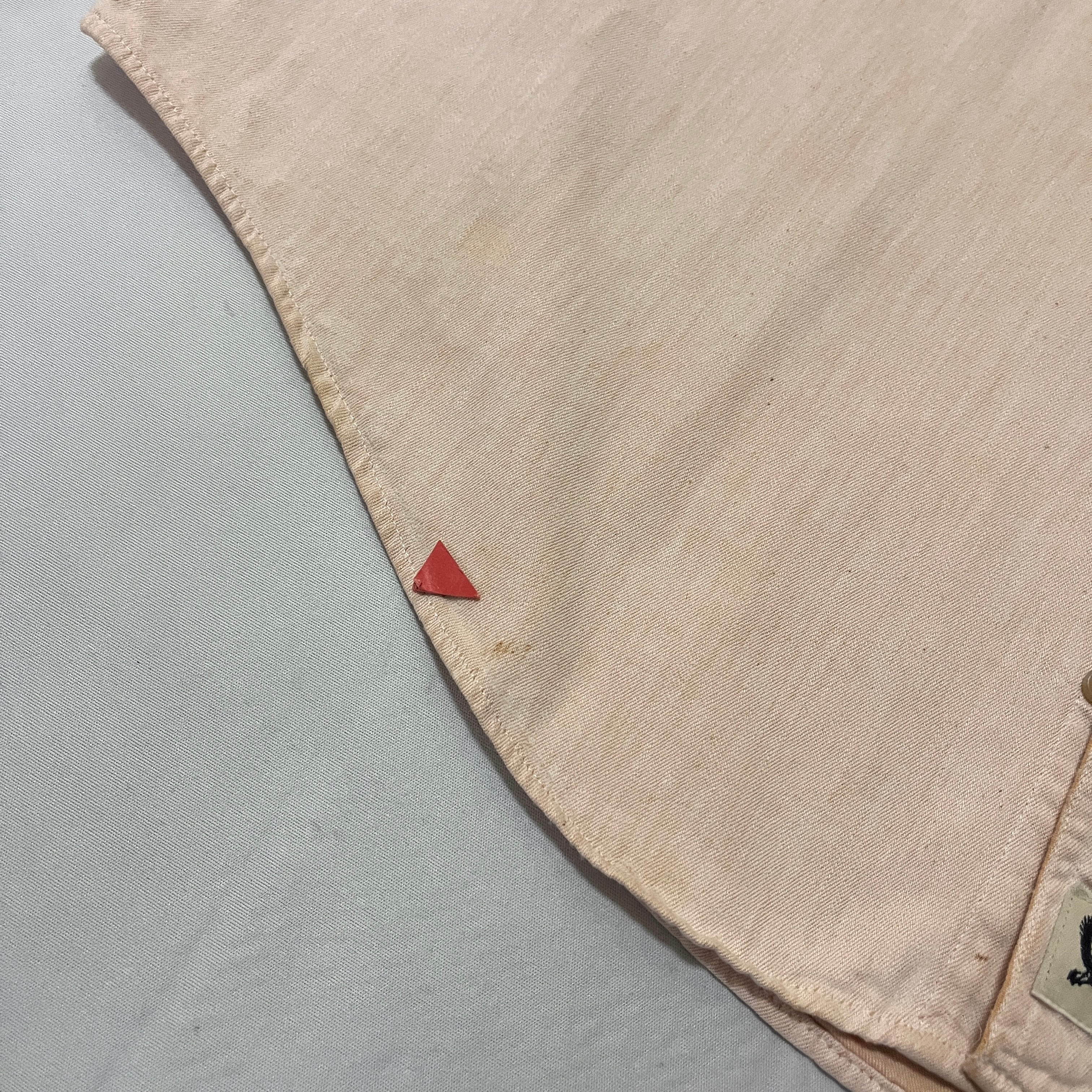 ■状態 襟、襟折り返し部に使用感、うっすら色抜け、第二ボタン付近、右胸、腹部、右裾にうっすらサビ汚れがございます。