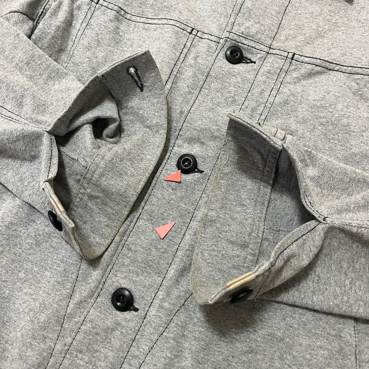 ■状態 襟に使用感、腹部、前裾、両袖、両袖口などうっすら黄ばみ汚れ、両肩、左袖にうっすらヤケがございます。