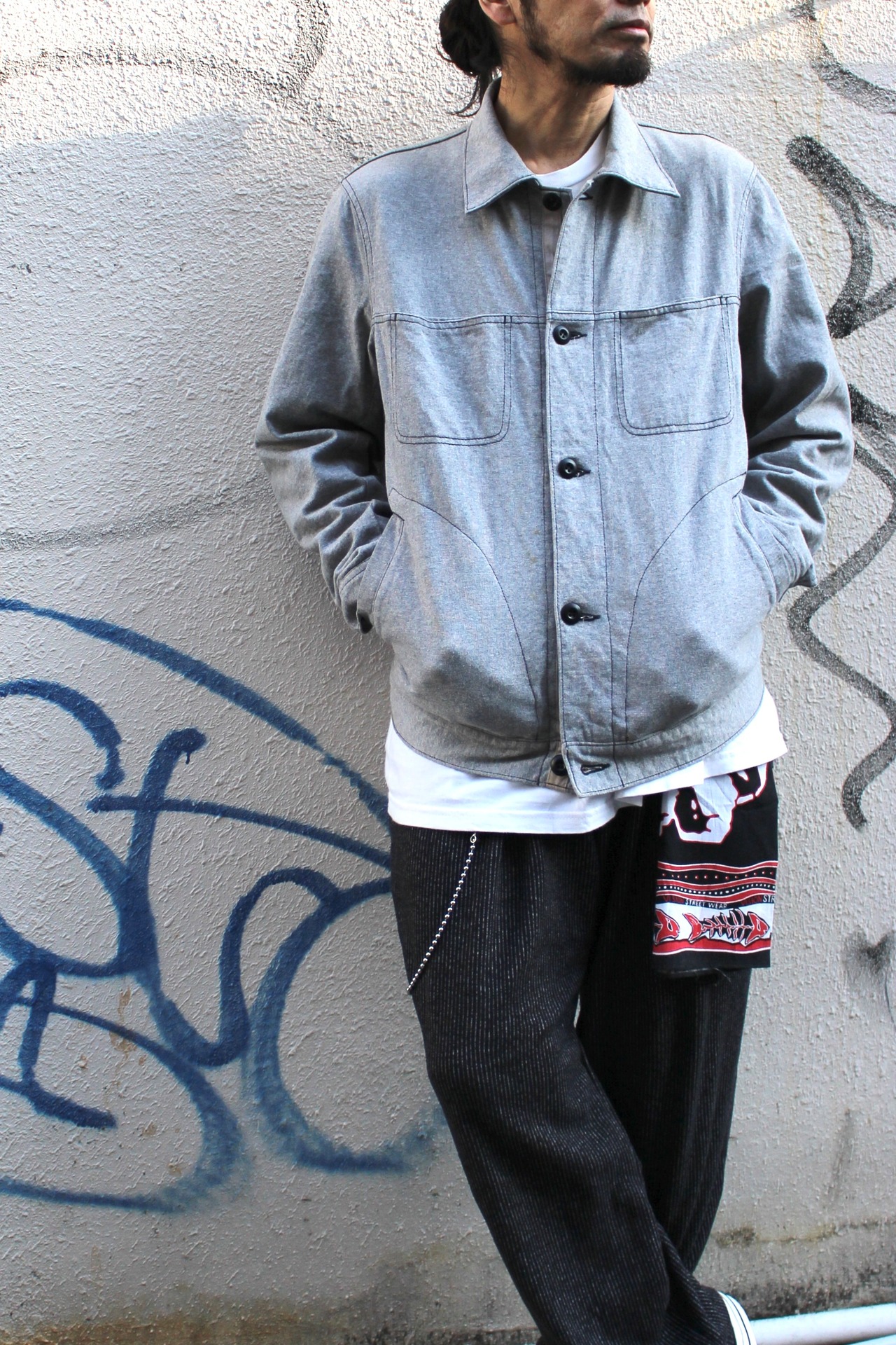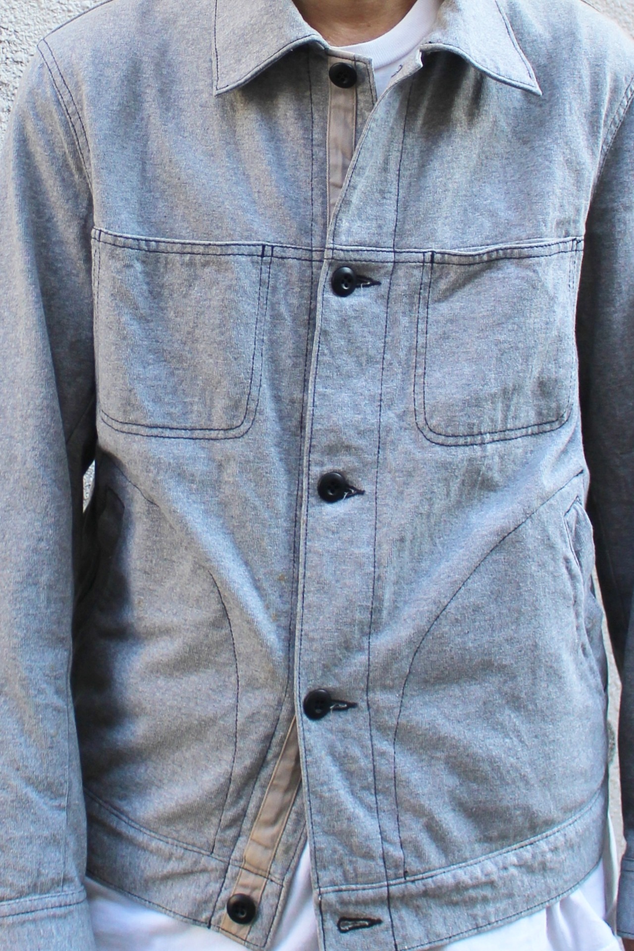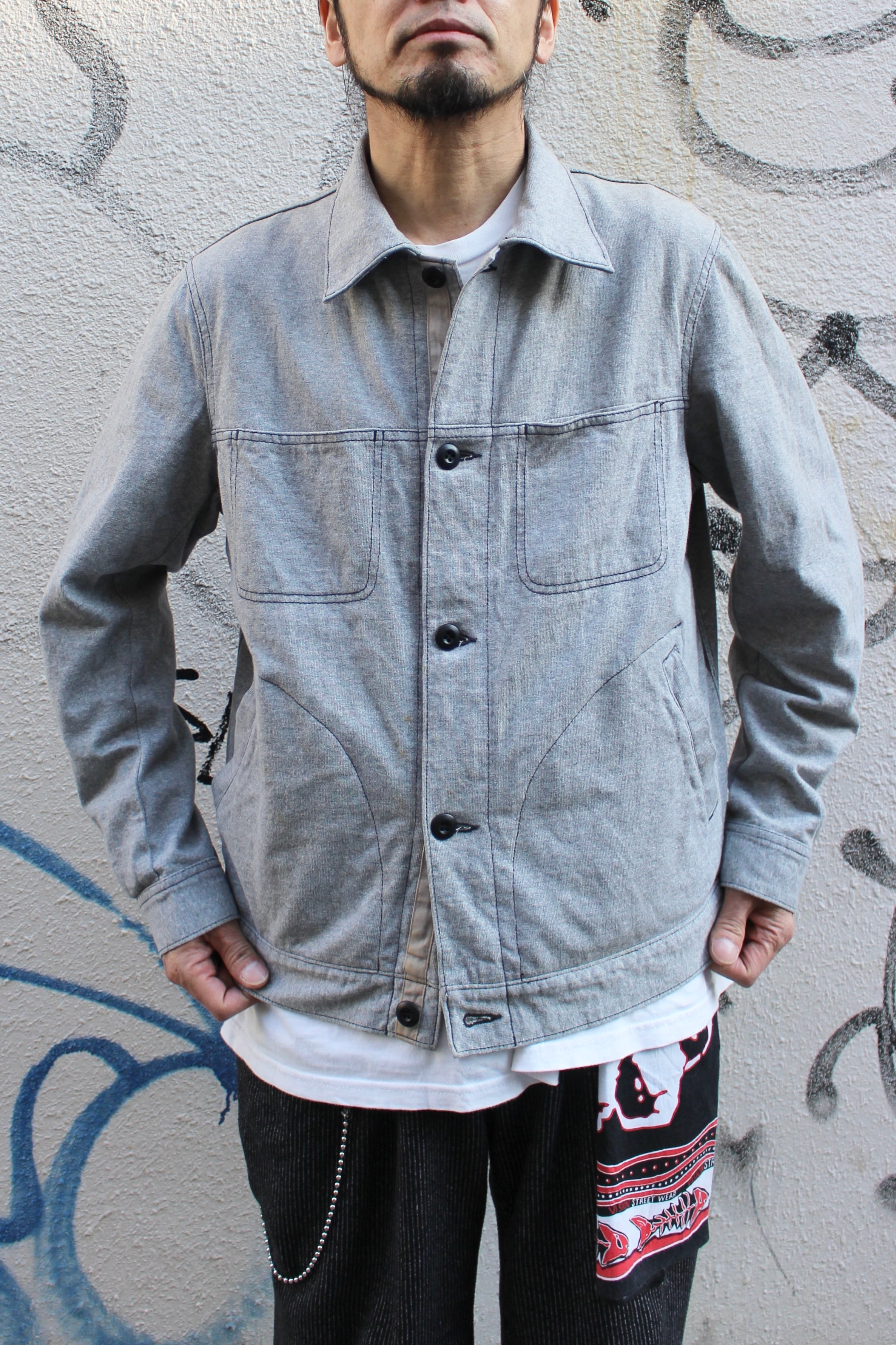 ■コットン素材の薄手で柔らかい素材感のスウェット地のトラッカージャケットです。