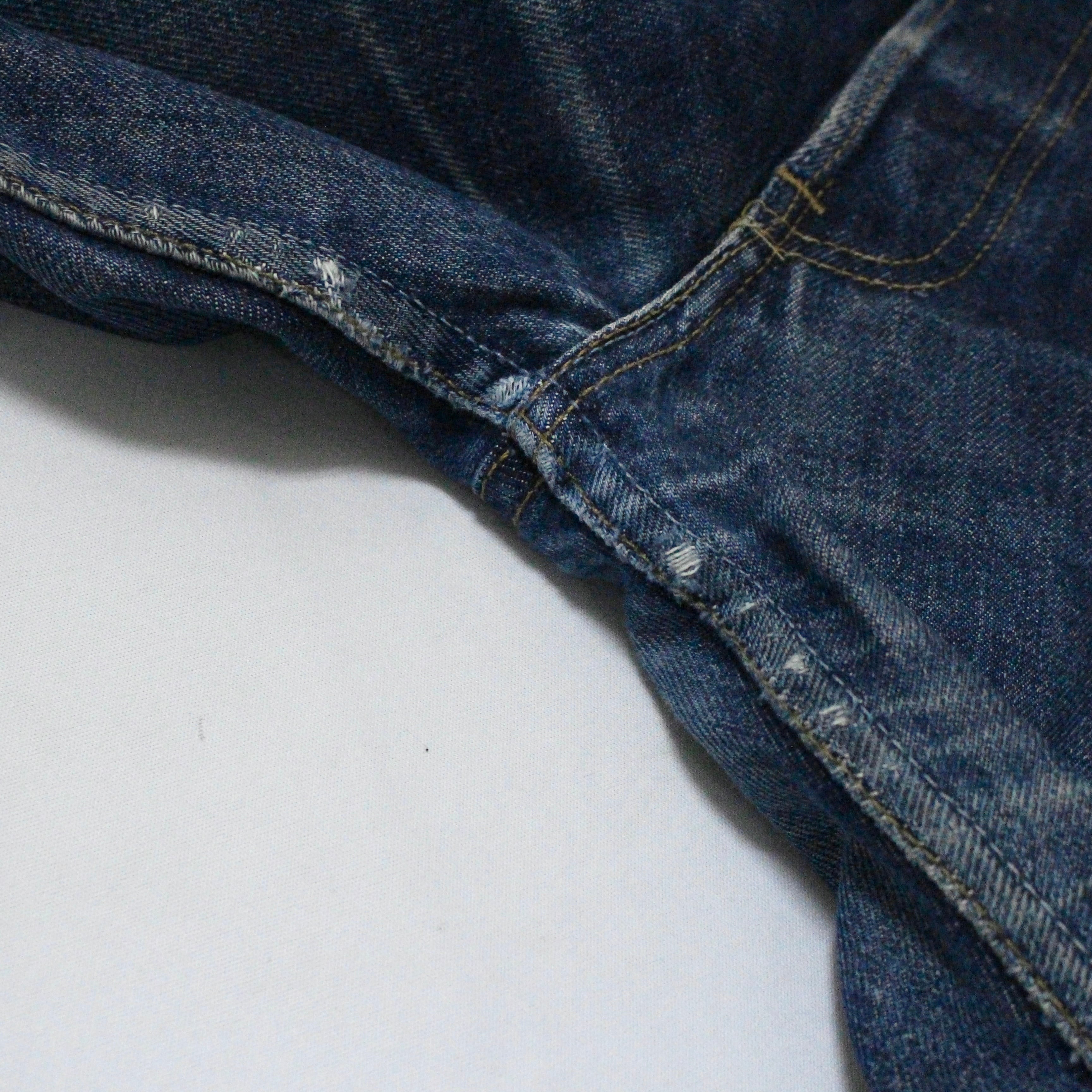 ■状態 写真のように、股部に擦り切れダメージ、バックポケットにダメージがあります。