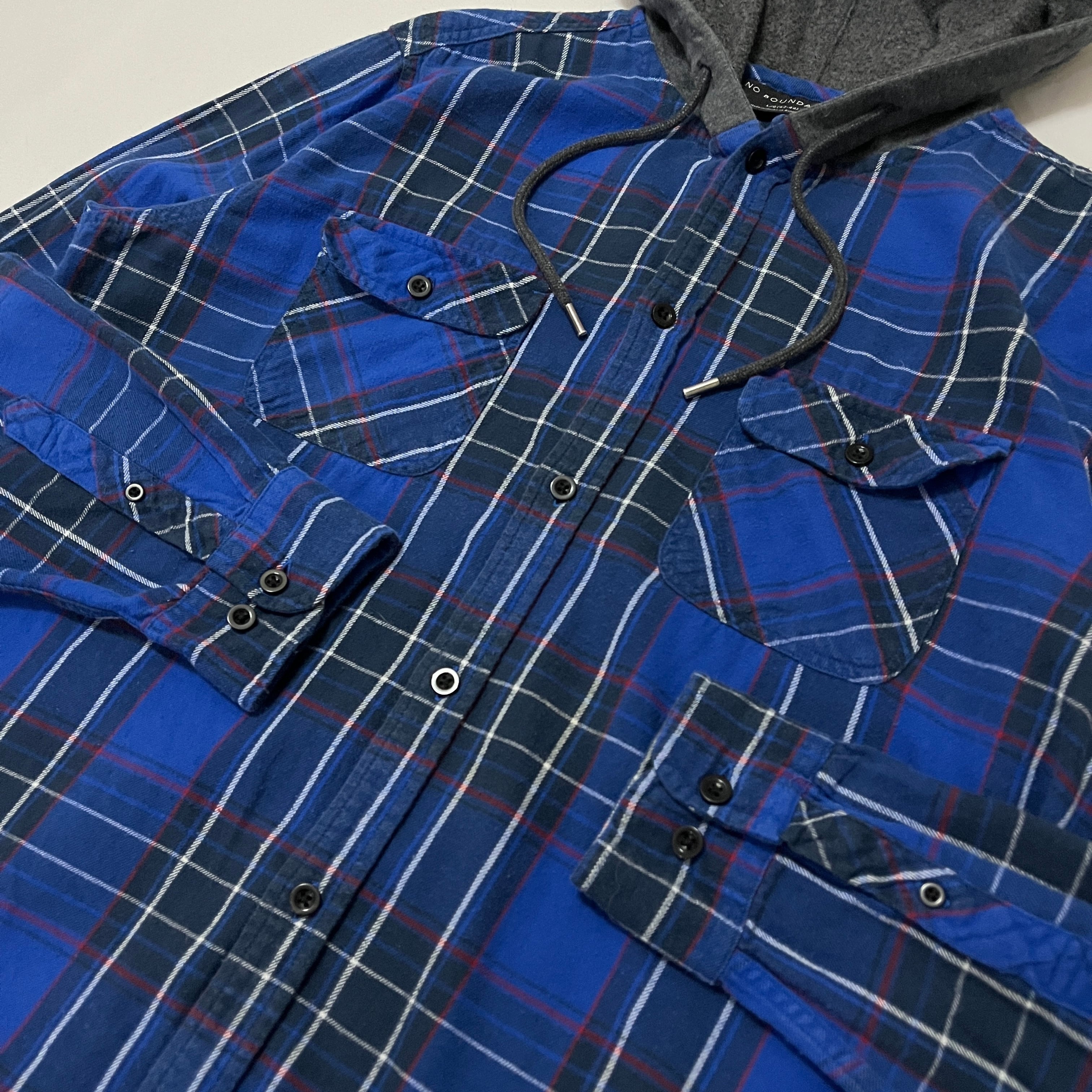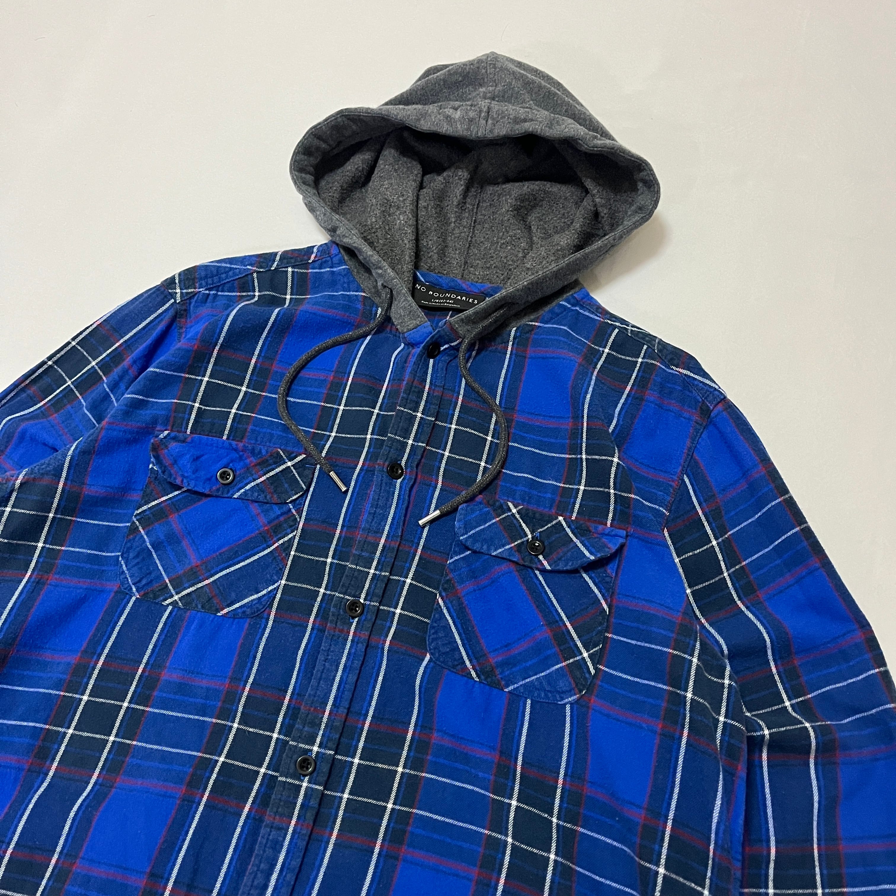 00s NO BOUNDARIES フード付き タータンチェックネルシャツ ノーバウンダリーズ