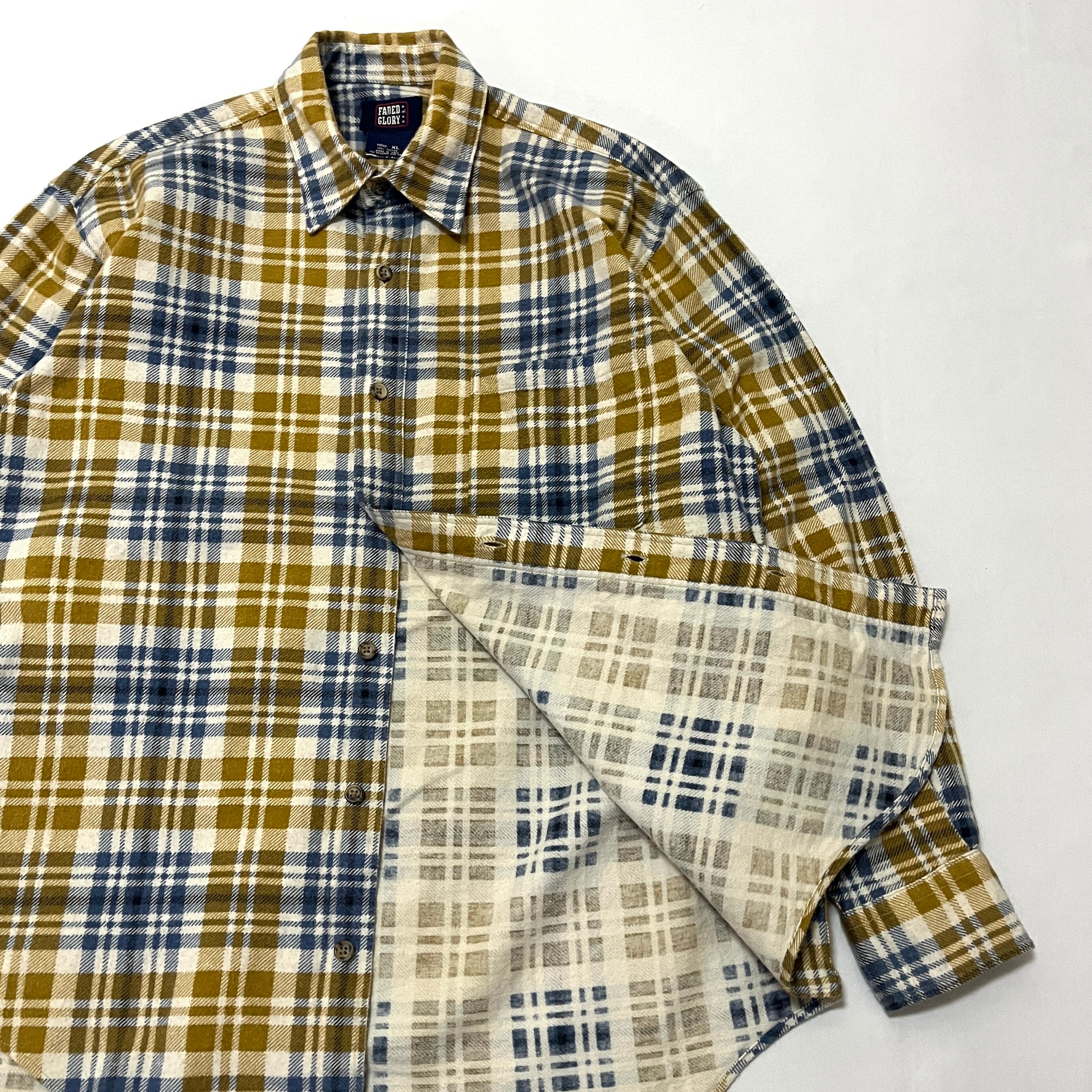 90s FADED GLORY コットン チェック プリントネル シャツ プリネル フェイデッドグローリー
