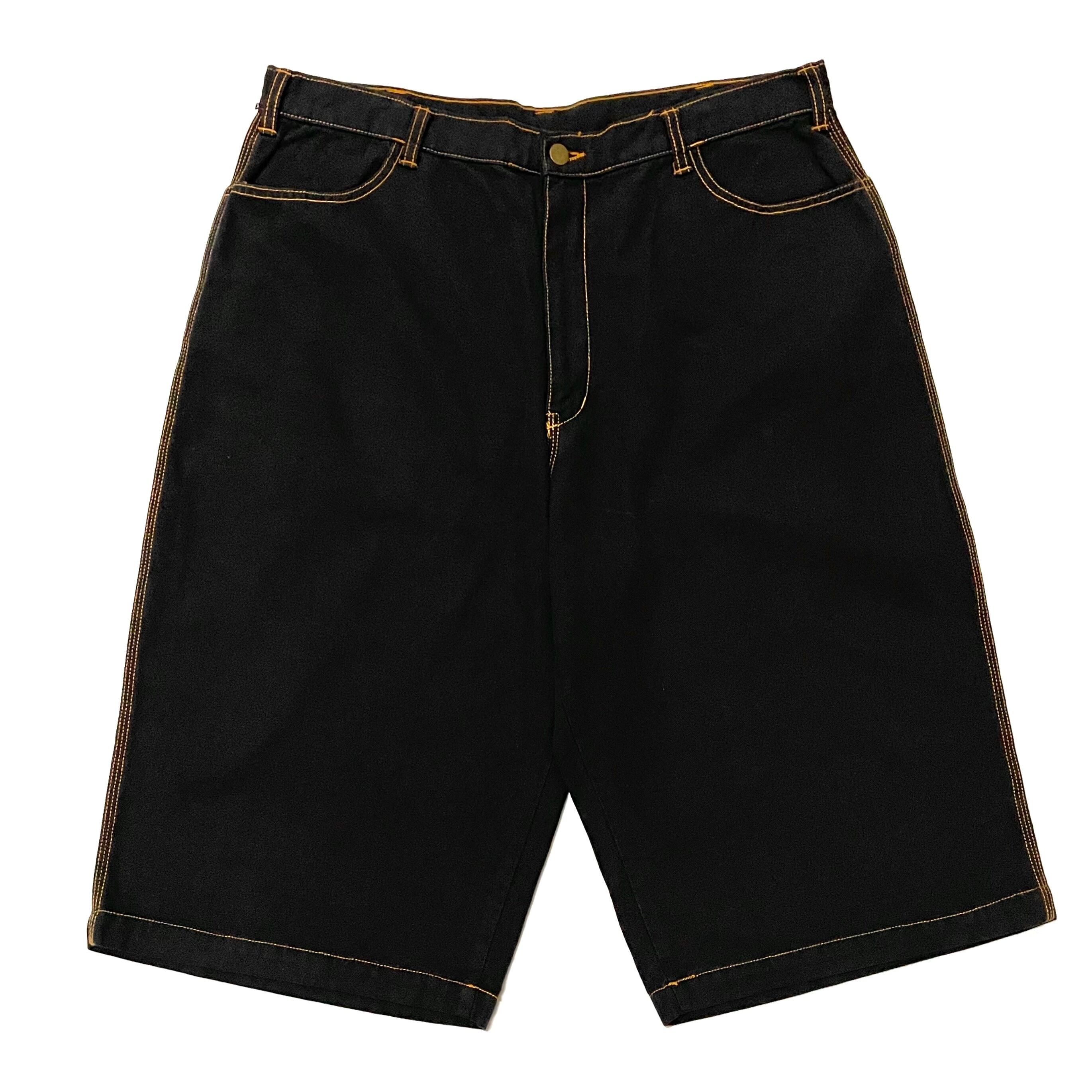 ●コットンツイル素材のハーフパンツです。すねあたりまでの丈感のビッグサイズな作りです。ステッチワークが特徴的な1点です。