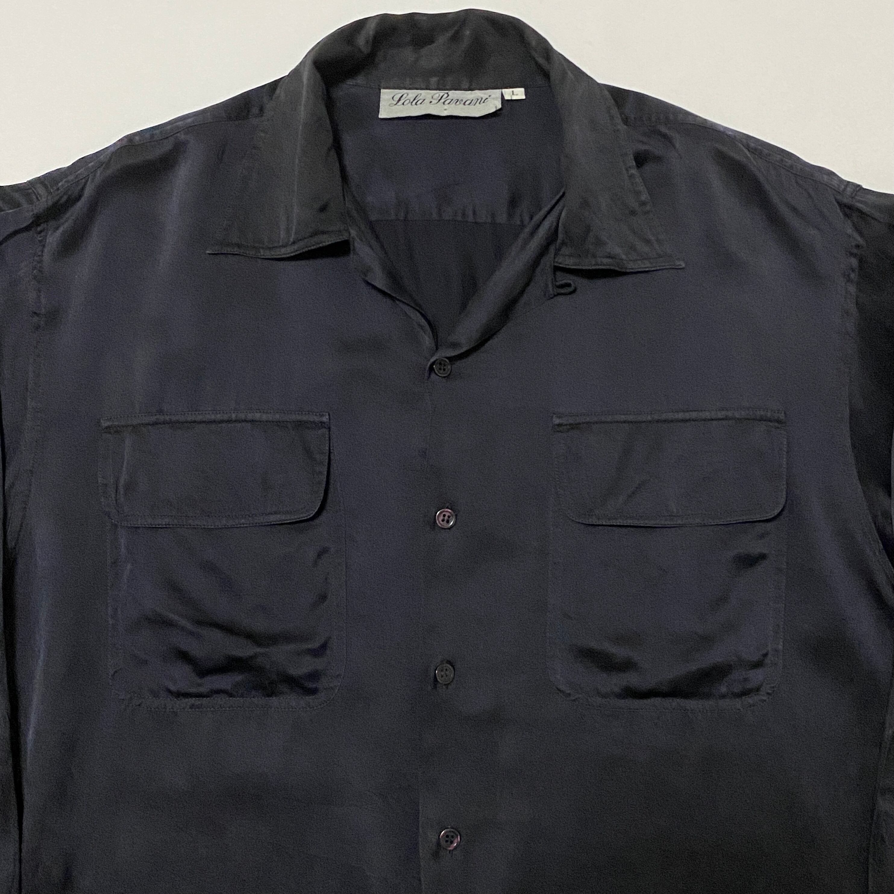 サテン オープンカラーシャツ ブラック