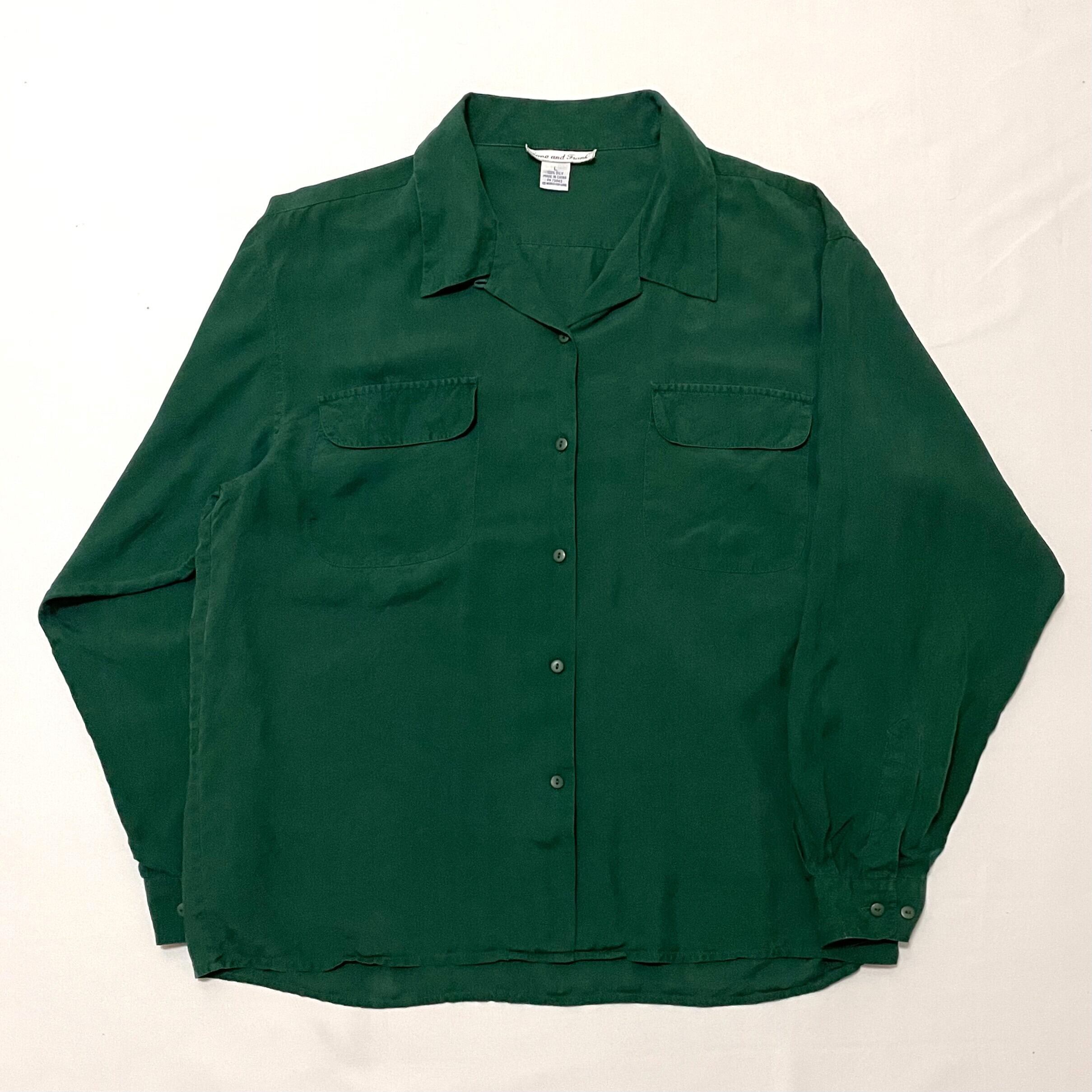 ■90年代頃の長袖シルクシャツです。オープンカラー、ボックスシルエット、合わせはレディースですが実寸はメンズのL程度あります。