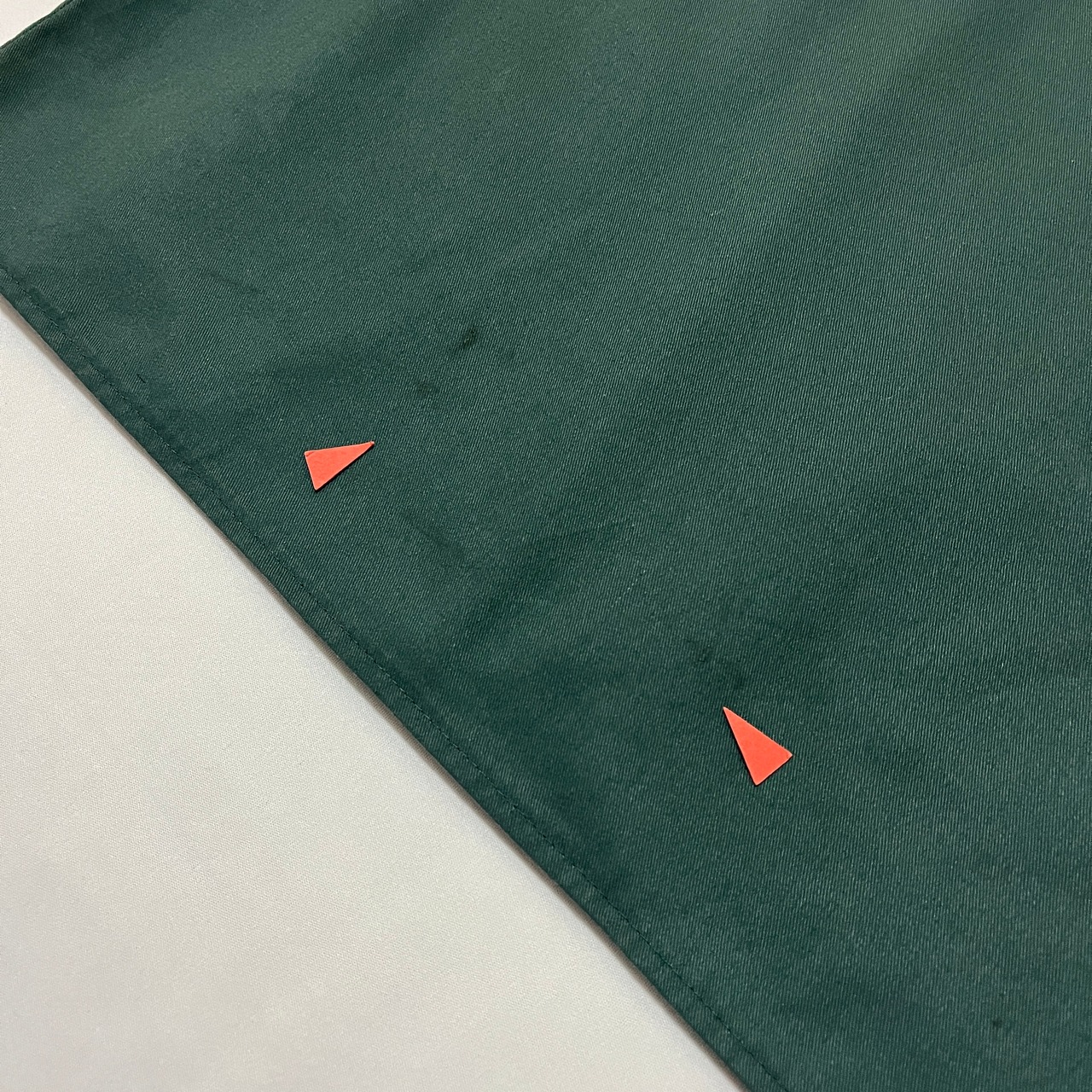 ■状態 前裾付近に擦れ、第4ボタン付近、後裾付近、後右裾付近、後左肩に油染みがうっすらございます。