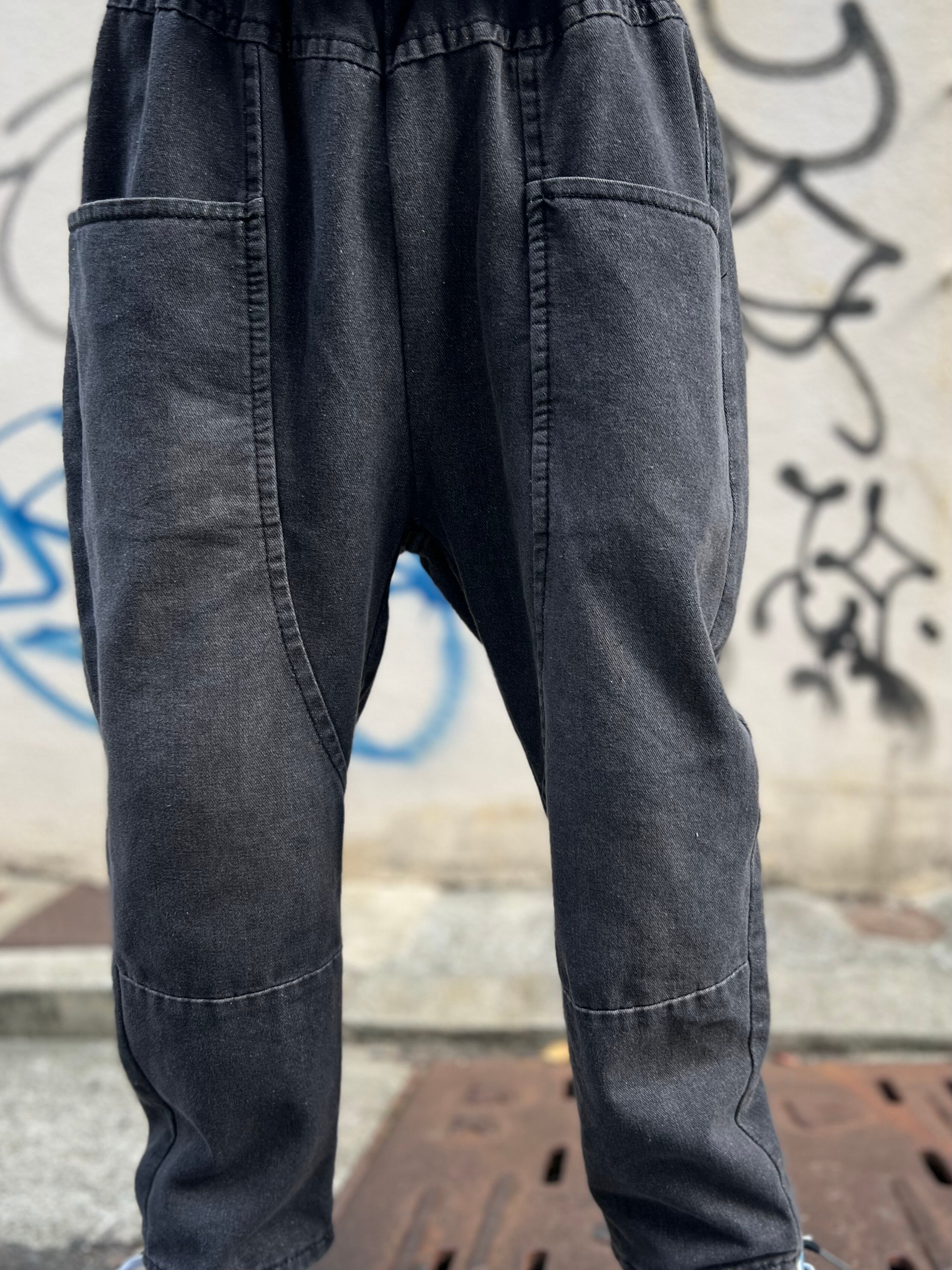 ブラック デニム テーパード イージー パンツ