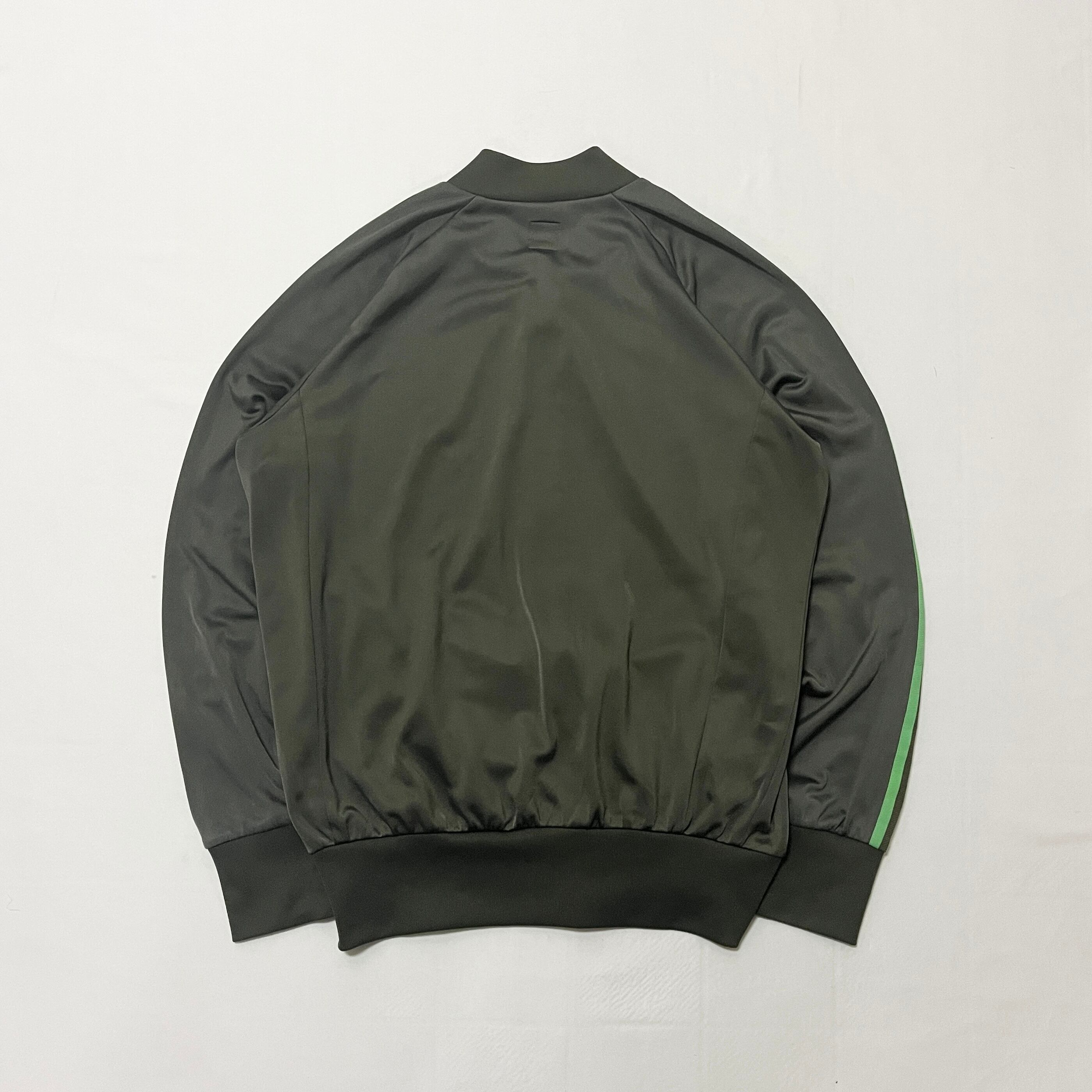 ■ナイロン80%ポリエステル20%混紡素材のジャージ素材の伸縮性のある素材感のトラックジャケットです。