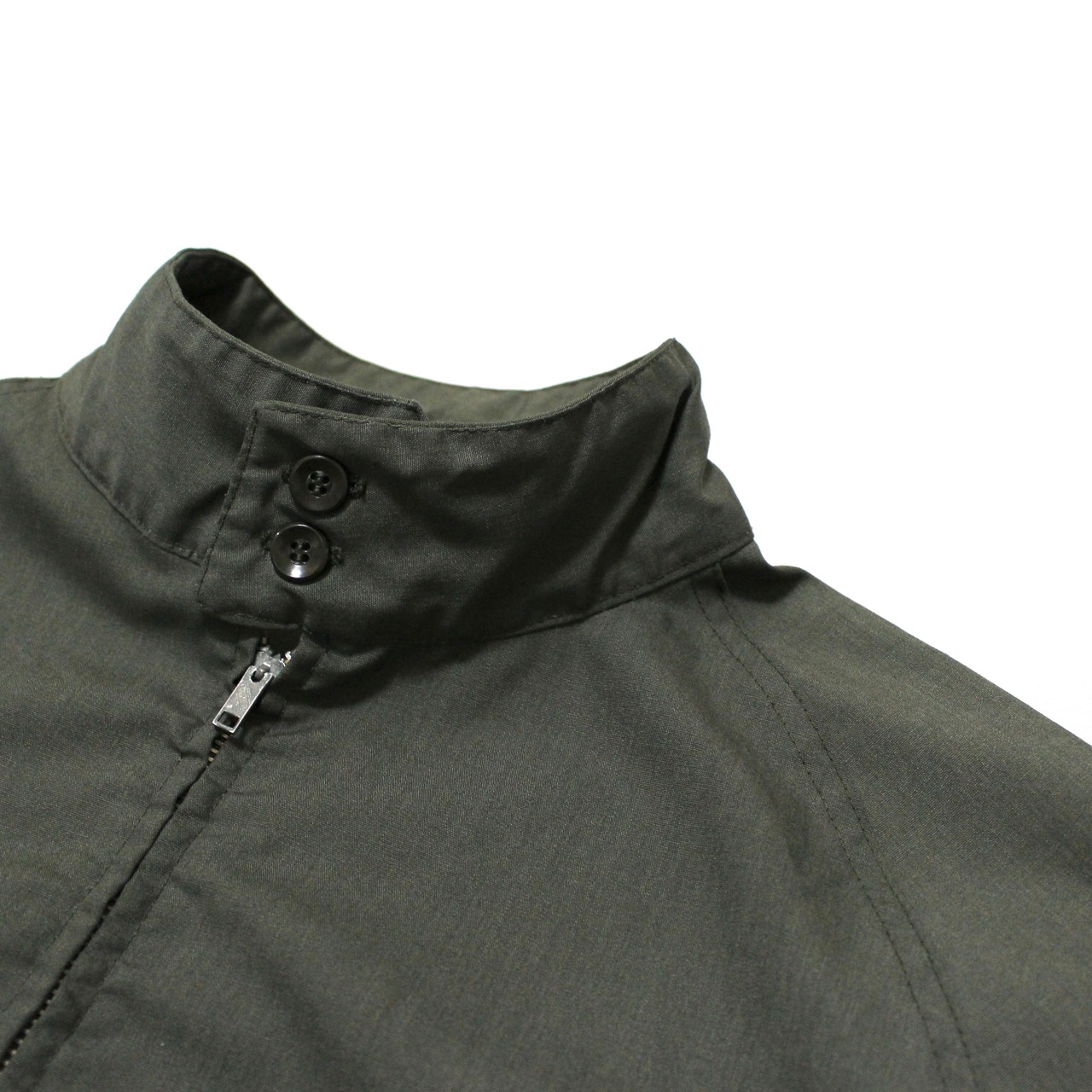 ■コットン×ポリエステル混紡素材の薄手でやや光沢のある素材感のドリズラージャケットです。