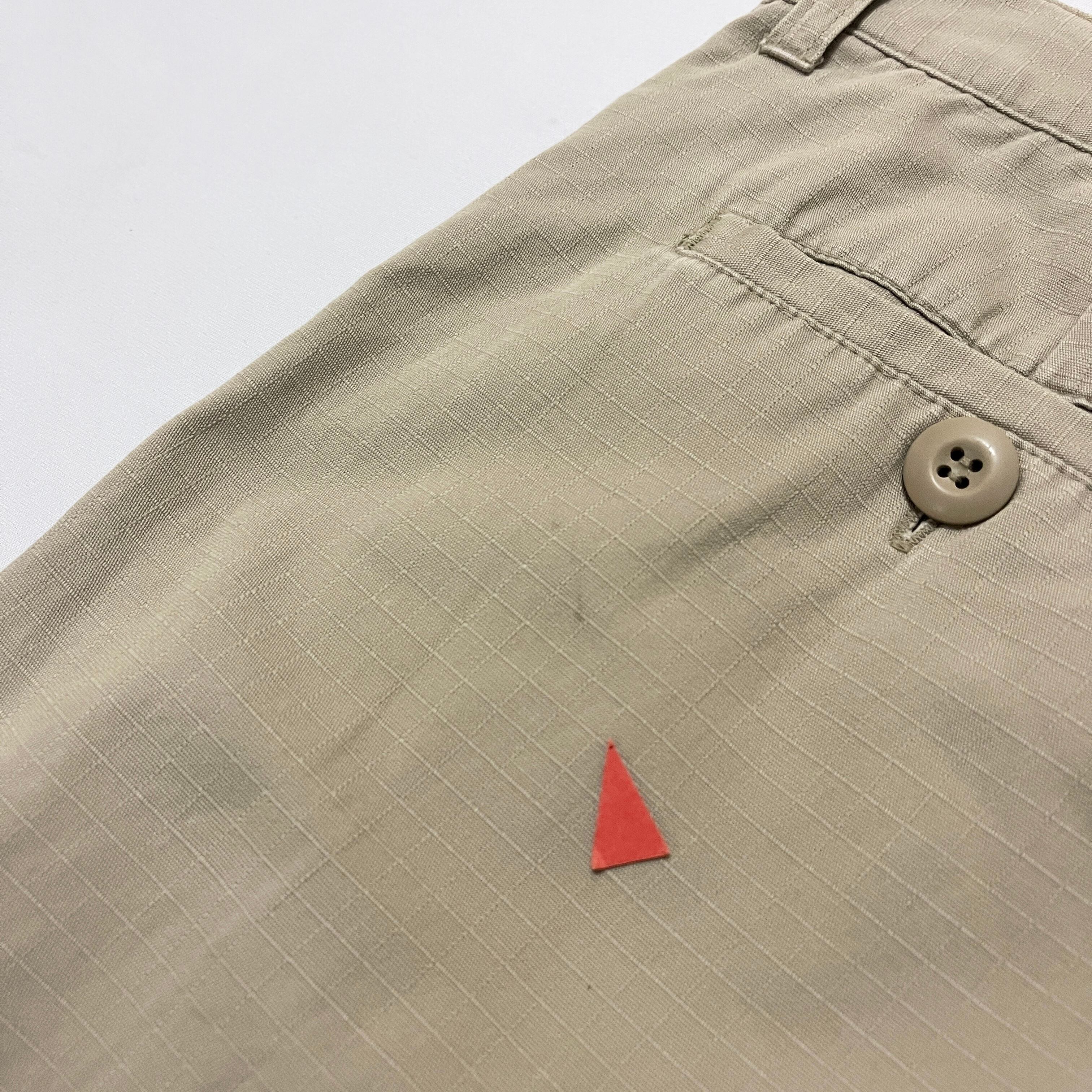 ■状態 股付近に小さな点汚れ、左裾、左後ろポケットうっすら擦れ汚れ、右足後ろに小穴がございます。