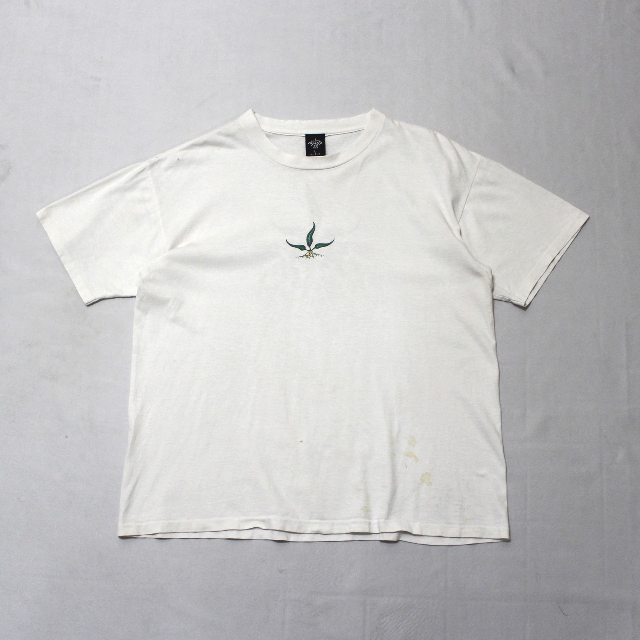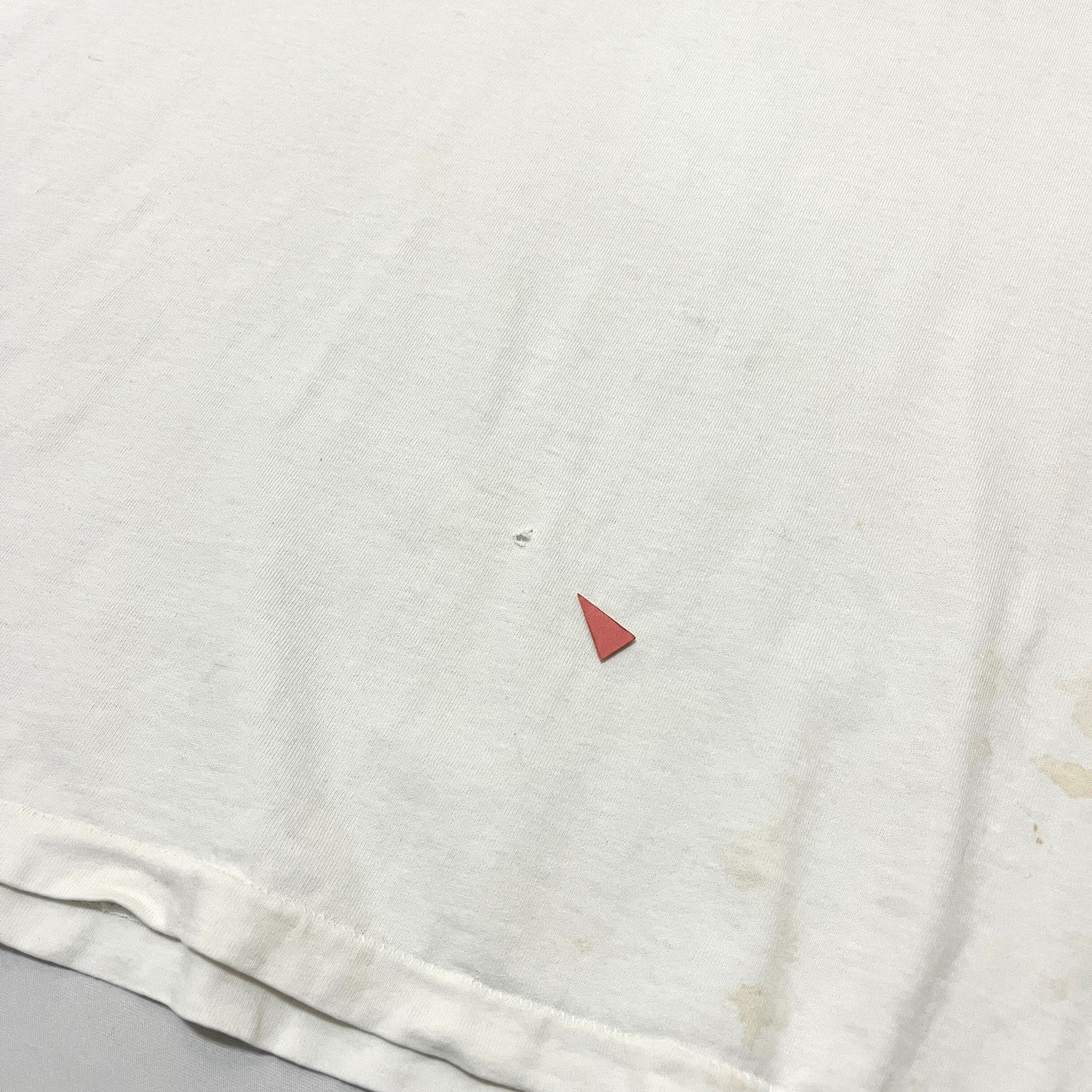 ■コットン素材の薄手で柔らかい素材感の半袖Tシャツです。両袖、裾シングルステッチの90s USA製の1枚です。