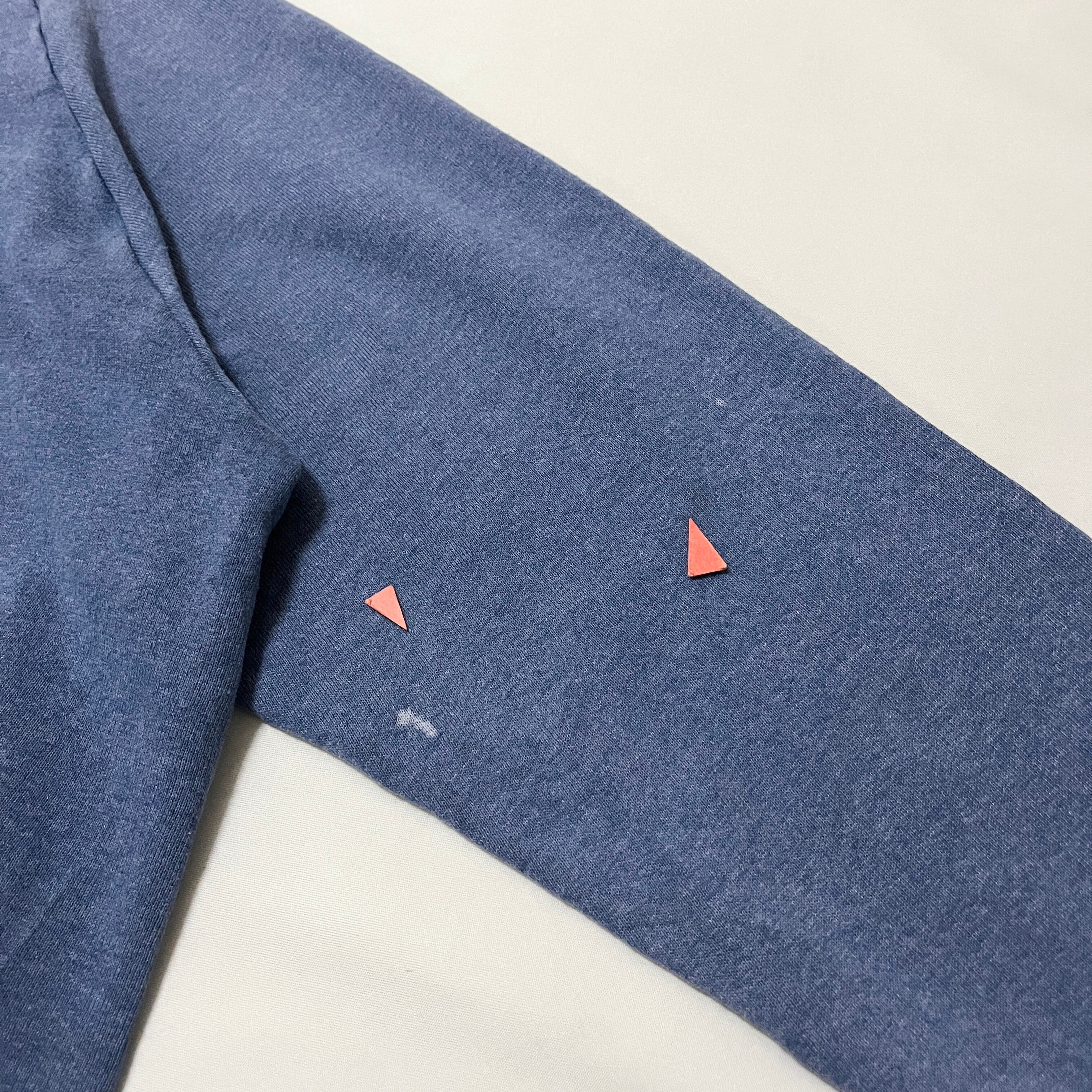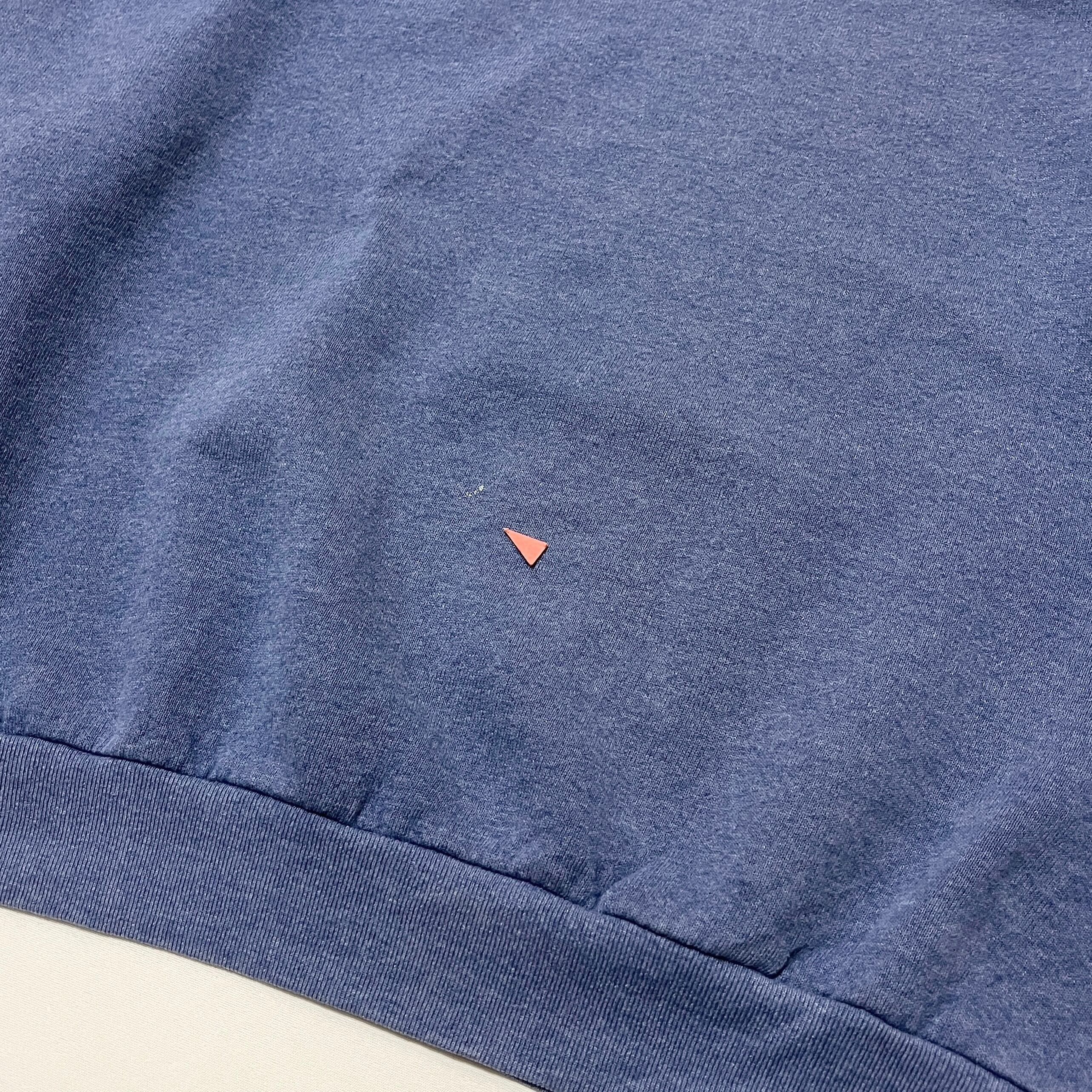 ■状態 全体的に色落ち、襟リブ、両袖口リブにフェードがございます。腹部に小さなペンキ飛び、左袖に色抜けがございます。