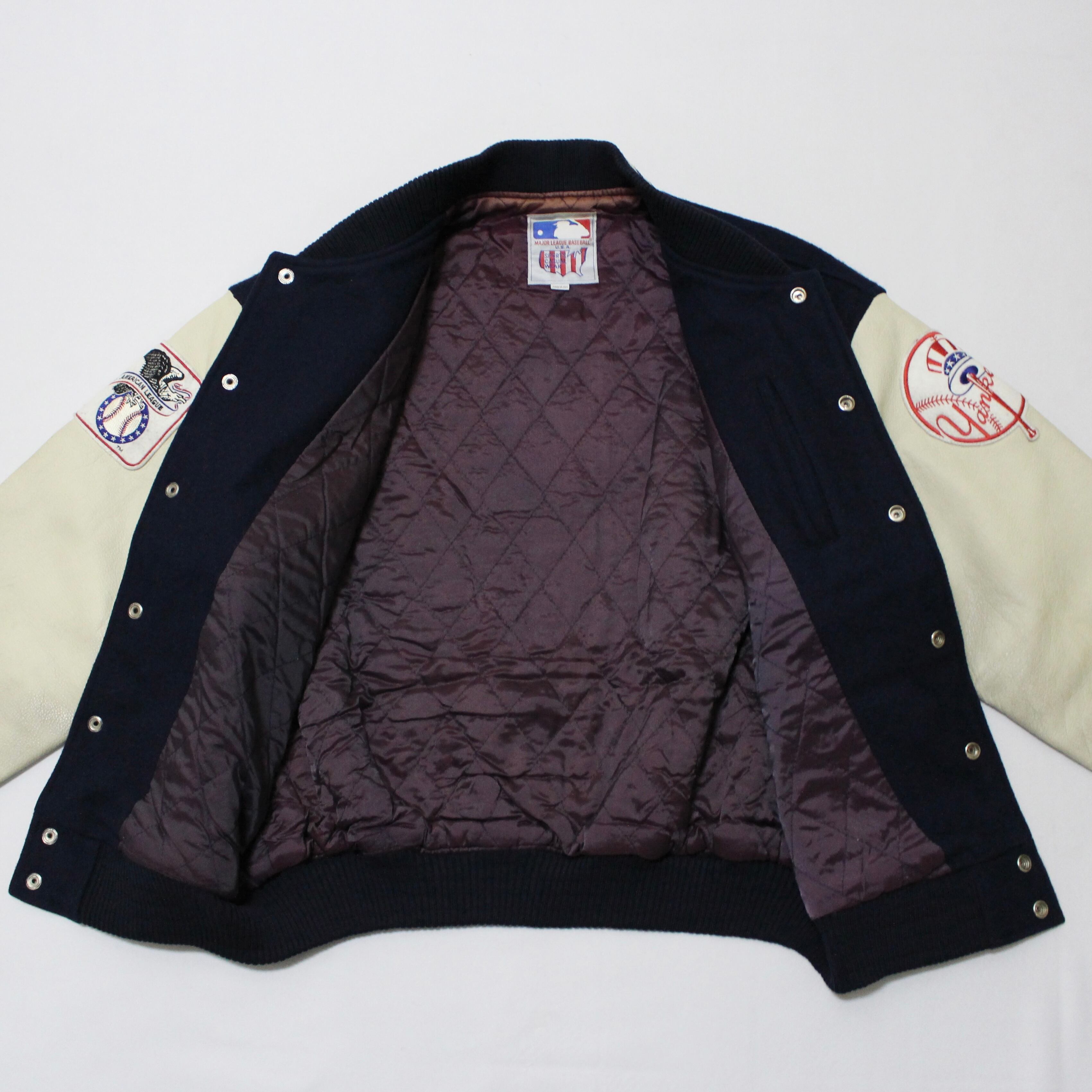80s' SPORTS CASUAL WEAR NEWYORK YANKEES メルトンレザー スタジアム ジャケット スタジャン